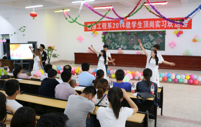为欢送我系2014级顶岗实习同学,展现大学生的青春风采,7月5日晚七点半,能源工程系2014级学生顶岗实习欢送会在明德楼阶梯教室隆重举行,系全体师生观看了本次演出。
