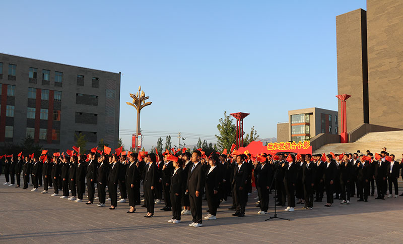 奋斗正当时,青春献给党!为庆祝新中国成立72周年,深入贯彻落实习近平总书记在庆祝建党成立100周年大会上的重要讲话精神,引导全院广大青年大力弘扬以爱国主义为核心的伟大民族精神,10月1日早上,学院在图书馆前广场举办“请党放心,强国有我”主题升国旗仪式。学院全体院领导、中层干部代表、师生代表300余人参加活动。