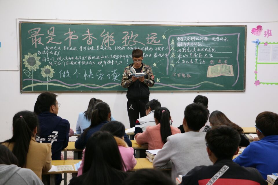 本次主题班会由各班班主任主持召开,同学们都积极的上台向大家推荐了自己最喜欢看的书目。15级光伏班的蔡玉萍同学,为我们讲述了冰心的散文集《梦》的故事,博得了大家的阵阵掌声。