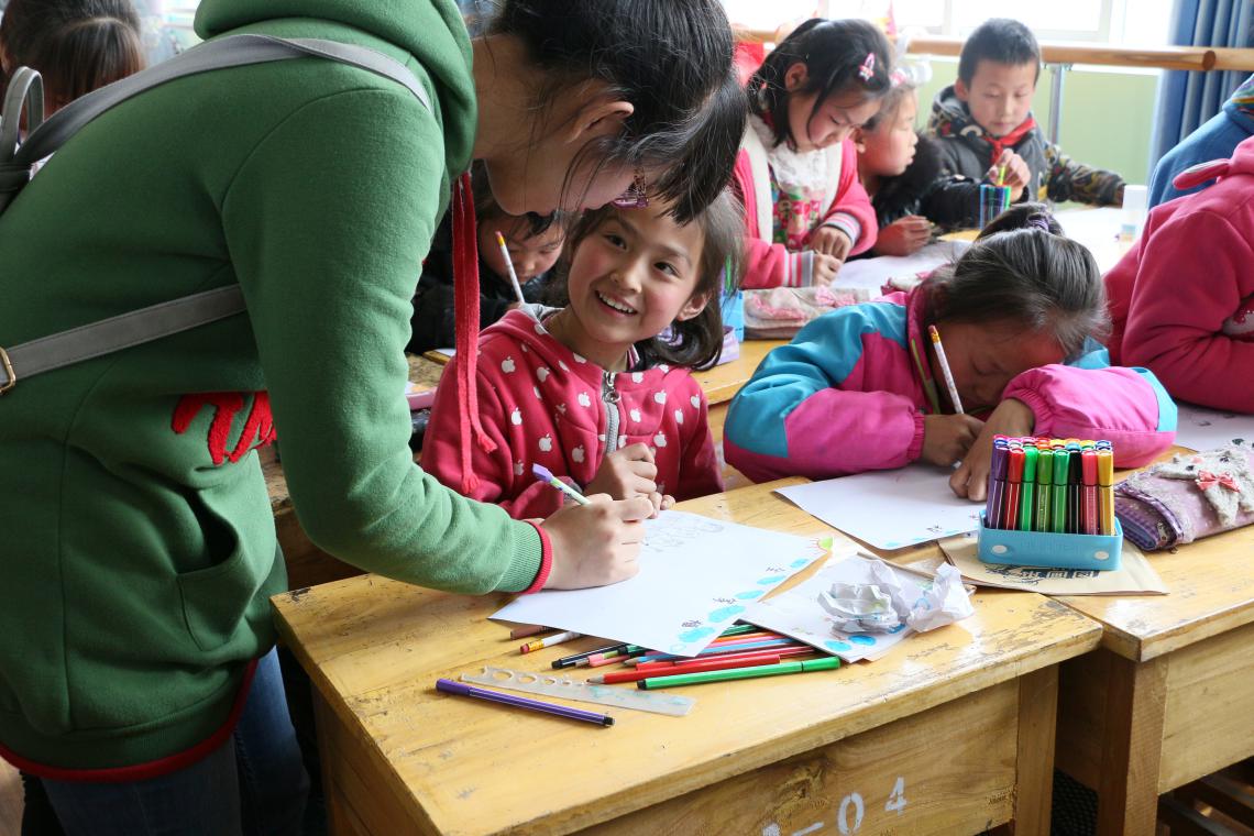 接下来的互动环节,志愿者们将自己的美术作品和手工艺作品进行了展览,并协助小朋友们完成全家福的创作和手工艺品的制作。画一幅全家福,让他们感受到家的温暖,叠一只小船载着“他们”的未来扬帆远航,叠一颗“红心”为他们送去最真挚的祝福,愿他们茁壮成长。最后由四坝中学张校长为表现突出的小朋友颁发了纪念品,这一环节不仅激发了小朋友们学习绘画和手工艺品的兴趣,而且提高了小朋友的动手能力,交流能力,同时提高了志愿者的服务能力。