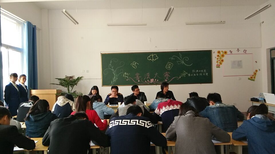 能源工程系第四届书法大赛于2015年10月20日下午5点在明德楼104教室隆重举行。本次书法大赛经过层层海选,最终有18位同学进入决赛。这次书法大赛邀请了侯舵、付江鹏两位老师。