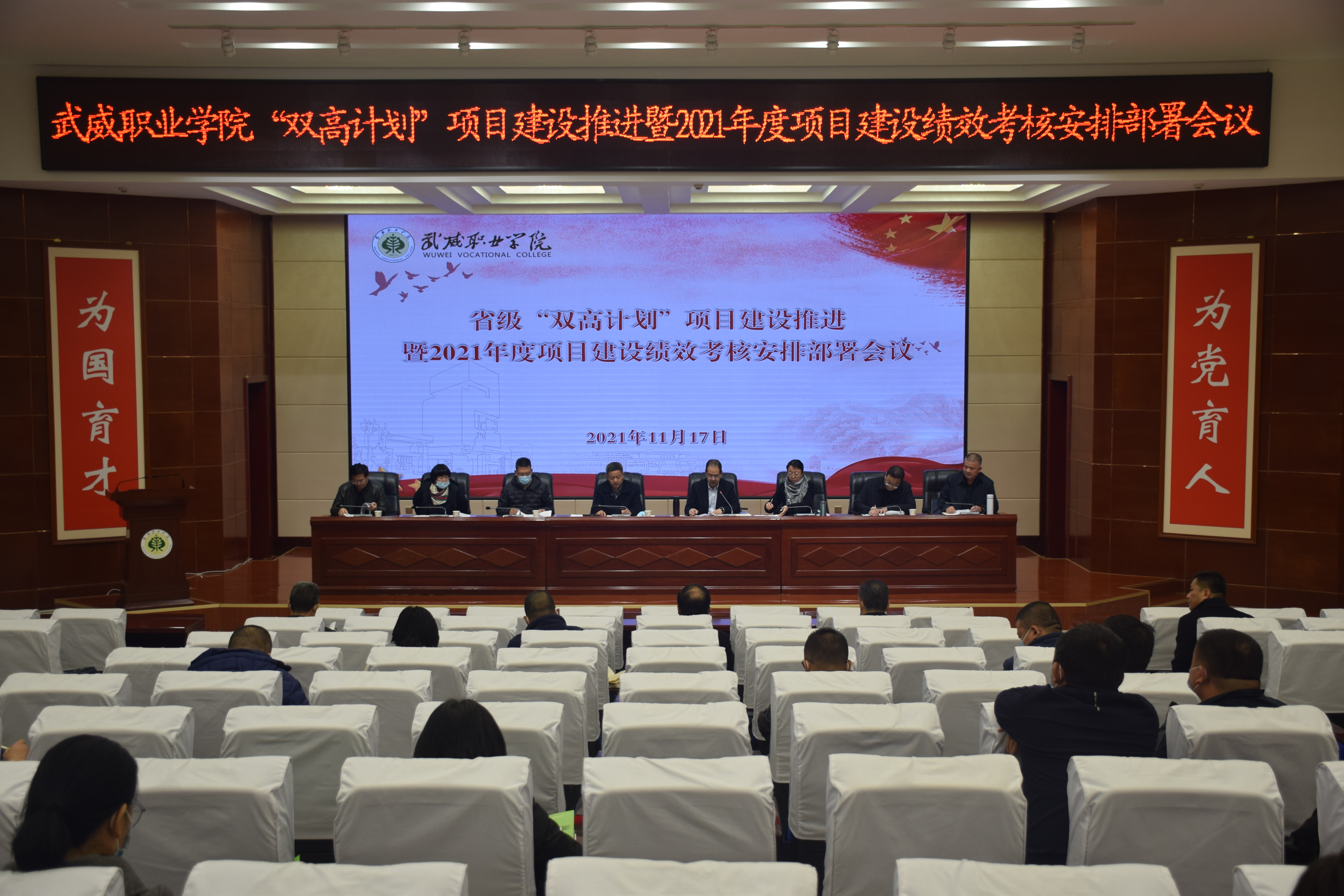 11月17日上午,“双高计划”项目建设暨2021年度项目建设绩效考核安排部署会议在菁英厅召开。