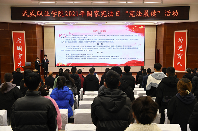 “本宪法以法律的形式确认了中国各族人民奋斗的成果,规定了国家的根本制度和根本任务,是国家的根本大法,具有最高的法律效力……” 在“12·4”国家第八个宪法日当天,学院举办了“宪法晨读”活动。伴随着朗朗的诵读声,在场师生庄严而肃穆地感受着宪法作为国家根本大法的神圣不可侵犯性。