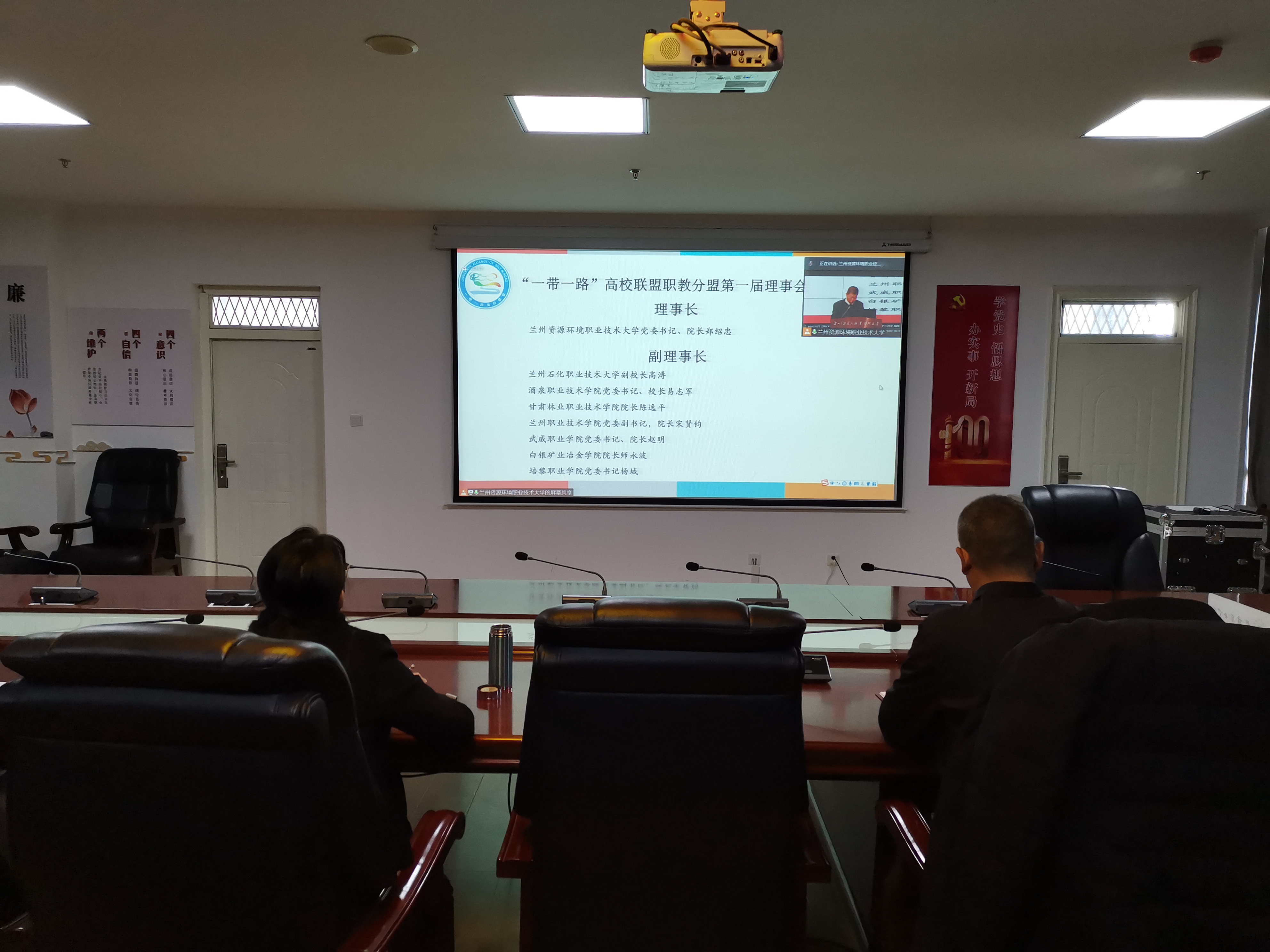 12月9日下午,“一带一路”高校联盟职教分盟第一届理事会会议在兰州资源环境职业技术大学召开,会议旨在加强“一带一路”高校联盟职教分盟组织建设,增进分盟成员单位之间的合作与交流,发挥理事单位在推进“一带一路”职业教育对外合作与交流作用。会议以兰外线上兰内线下的形式召开。学院设立分会场,参加在线会议。党委委员、副院长田迎春参加会议,国际合作与交流处处长潘从民及相关人员参加会议。