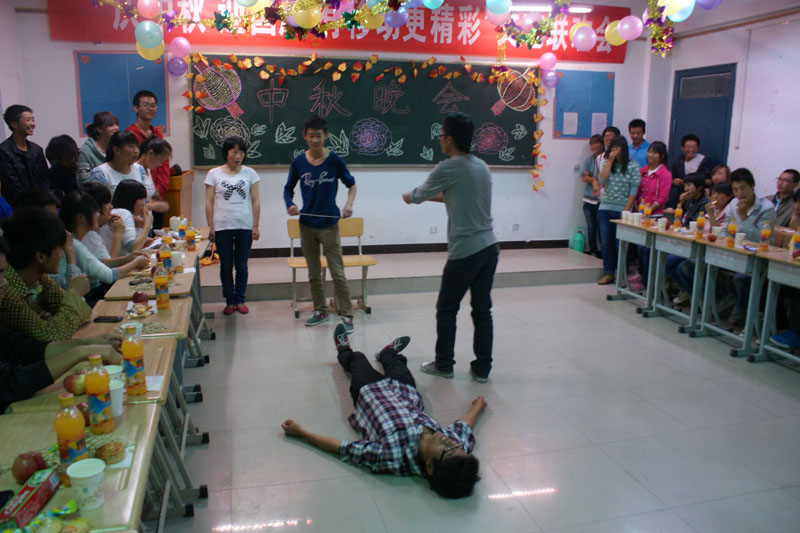 黄老师首先致开幕词并送上了全体教师对同学们的深切问候和美好祝愿,随后王刚等同学的《相亲相爱》拉开本次晚会的序幕。在整个晚会过程中,内容丰富多彩,形式多样。有《吻别》,《sunshine in the rain》,《沉鱼落雁》,《我的中国心》等悠悠歌声;《诈骗》、《相亲》等幽默风趣的小品,优美的藏族舞蹈《在那草地上》,同时还穿插了师生互动的有奖问答游戏等,……为在座的师生呈现了一场视觉盛宴,现场不断传出鼓掌声。