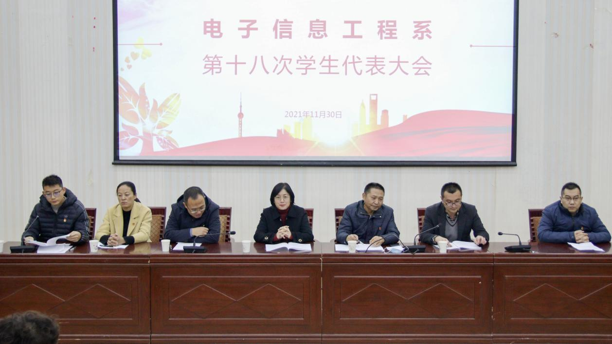 11月30日,电子信息工程系第十八次学生代表大会在明德楼阶梯教室隆重召开。110名学生代表参会。