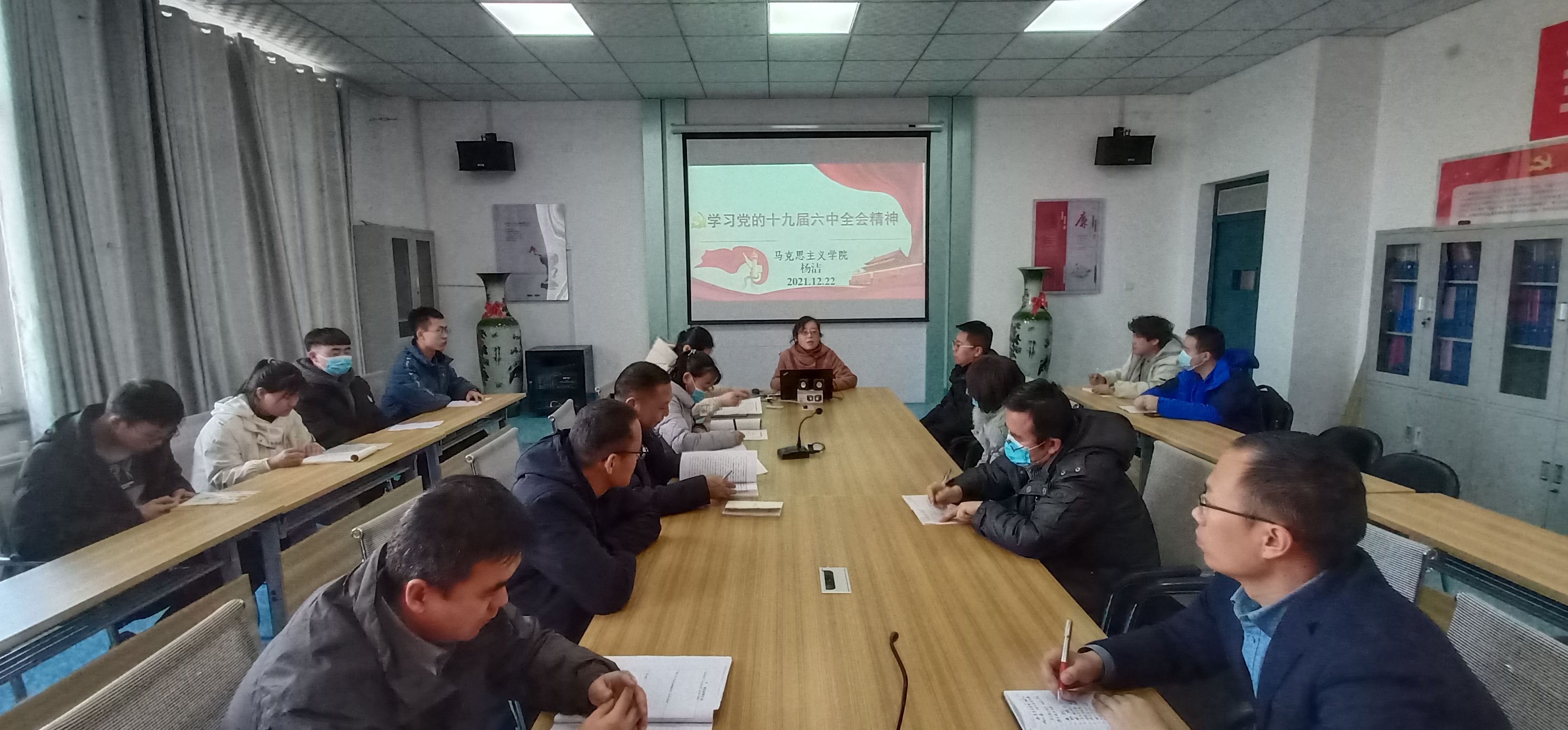 为深入学习贯彻落实党的十九届六中全会精神,12月22日下午,电子信息工程系邀请马克思主义学院杨洁老师在明德楼409会议室进行党的十九届六中全会精神专题宣讲,电子信息工程系全体教师和学生入党积极分子参加了宣讲。