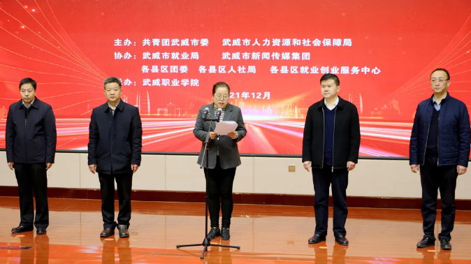 12月25日,由共青团武威市委、武威市人社局共同主办,武威市就业局、武威职业学院联合承办的甘肃省“百千万”创业引领工程武威市青年创新创业大赛(决赛)在我院大学生活动中心菁英厅圆满举行。出席大赛开幕式的有武威市人大常委会副主任刘光美,共青团甘肃省委青年发展与权益维护部一级调研员范智勇,武威职业学院党委书记、院长赵明,市就业局副局长夏湧涛。团市委书记马维斌主持开幕式。