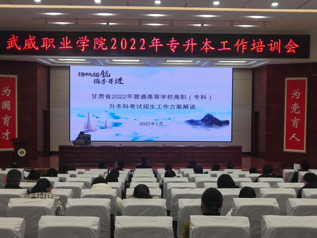 为贯彻落实甘肃省2022年普通专升本考试招生工作部署会会议精神,积极宣传我省2022年“专升本”招生考试改革政策,引导学院应届毕业生积极报考“专升本”考试,拓宽毕业生就业渠道,实现高质量就业。1月6日,招生就业处组织召开了学院2022年“专升本”工作培训会。相关部门负责人、各教学院系书记、主任、辅导员及毕业班班主任参加了会议。会议由招生就业处处长蔡柱山主持。