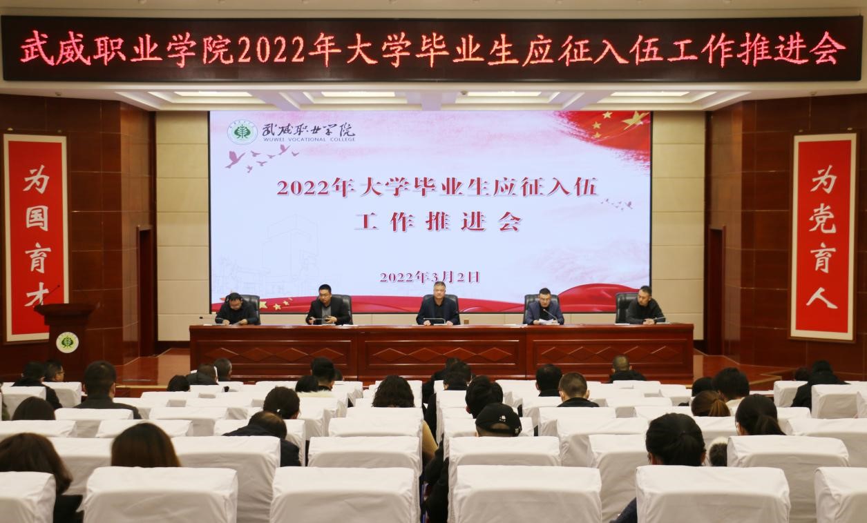 会议传达了全国、全省征兵工作电视电话会议精神和省教育厅、武威军分区有关大学毕业生应征入伍工作的要求,通报了我校目前毕业生报名和体检通过情况,向各教学院系分解下达了2022年大学毕业生应征入伍任务。学校武装部专职工作人员对毕业生参军入伍国家的优惠政策和学校的十项措施进行了宣讲。