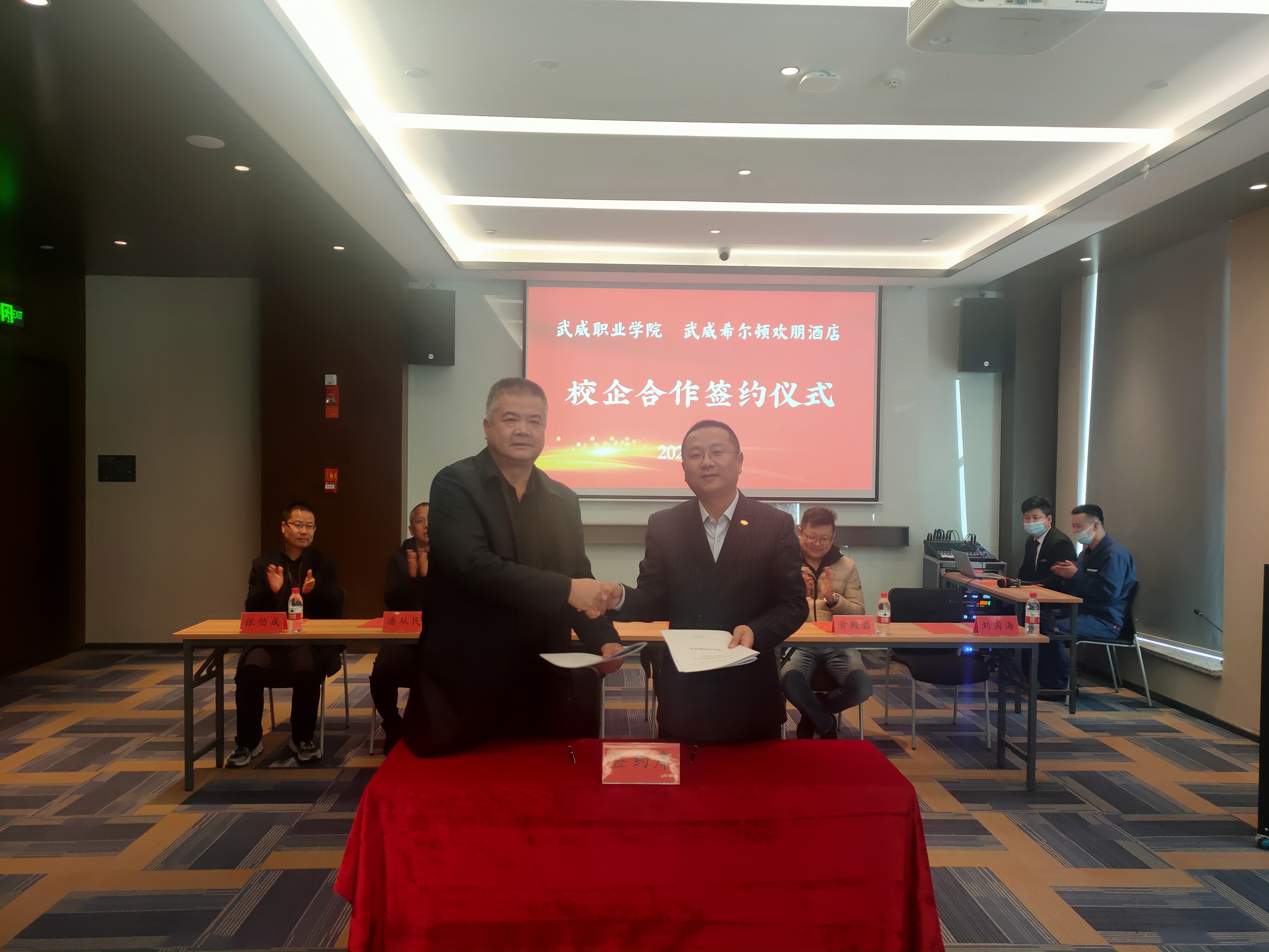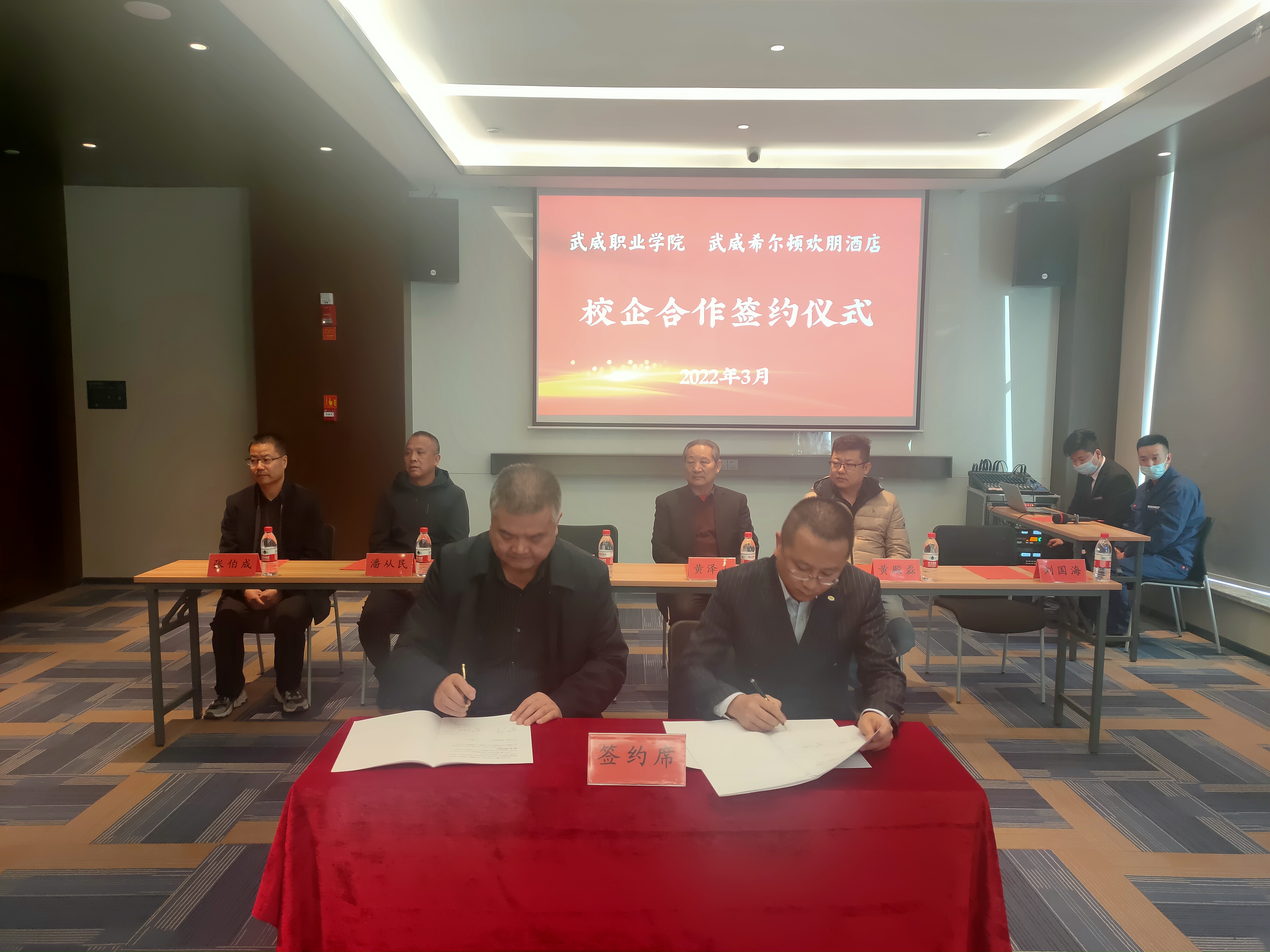 为深入贯彻落实教育部2022届普通高校毕业生就业创业网络视频会议精神,统一思想,提高认识,服务学院“双高计划”建设,3月2日,学院与武威希尔顿欢朋酒店举行校企合作揭牌暨签约仪式,副校长王守云代表学院出席签约仪式。
