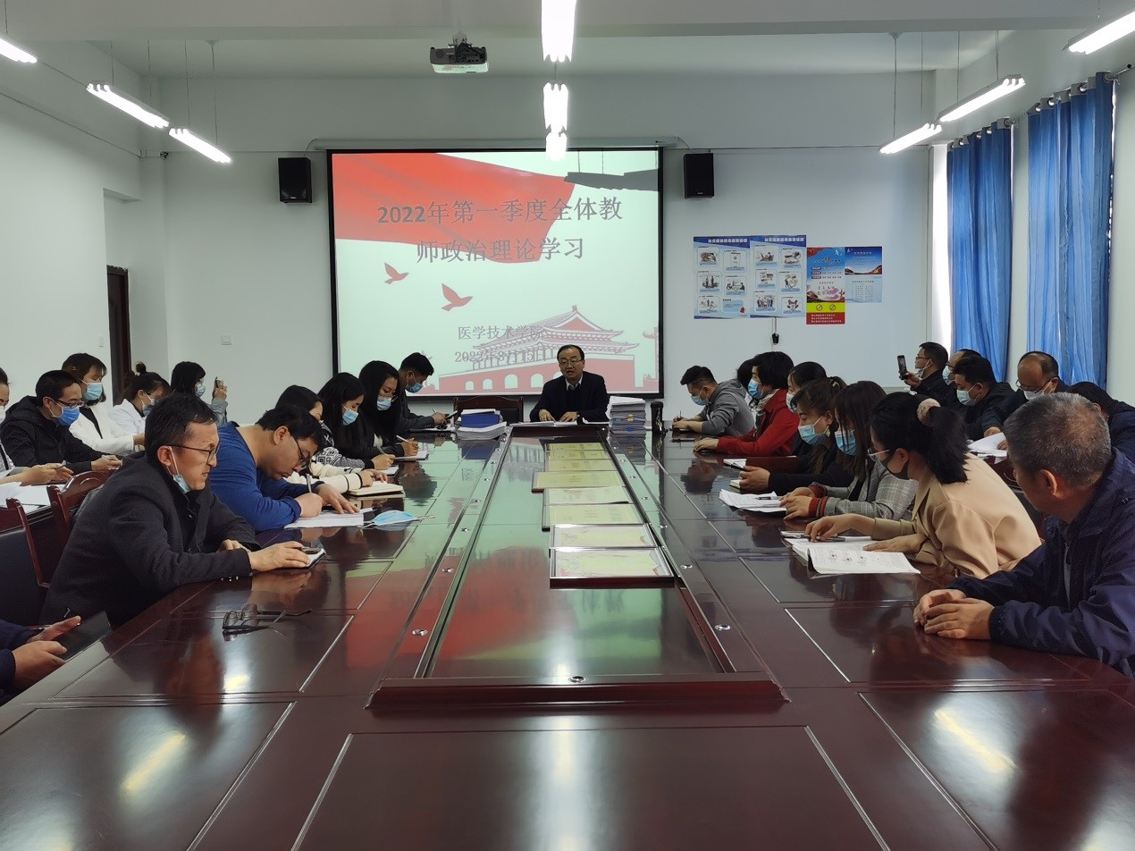 为全面提高全体教师的政治理论素质,增强“四个意识”、坚定“四个自信”、做到“两个维护”,将全体教职工思想行动统一到高质量完成“双高计划”建设任务,抢抓申办创建本科层次职业学校的大好机遇上。3月15日下午,医学技术学院在尚德楼404会议室召开全体教职工政治理论学习会议。会议由党总支书记黄文源主持,全体教职工参加会议。
