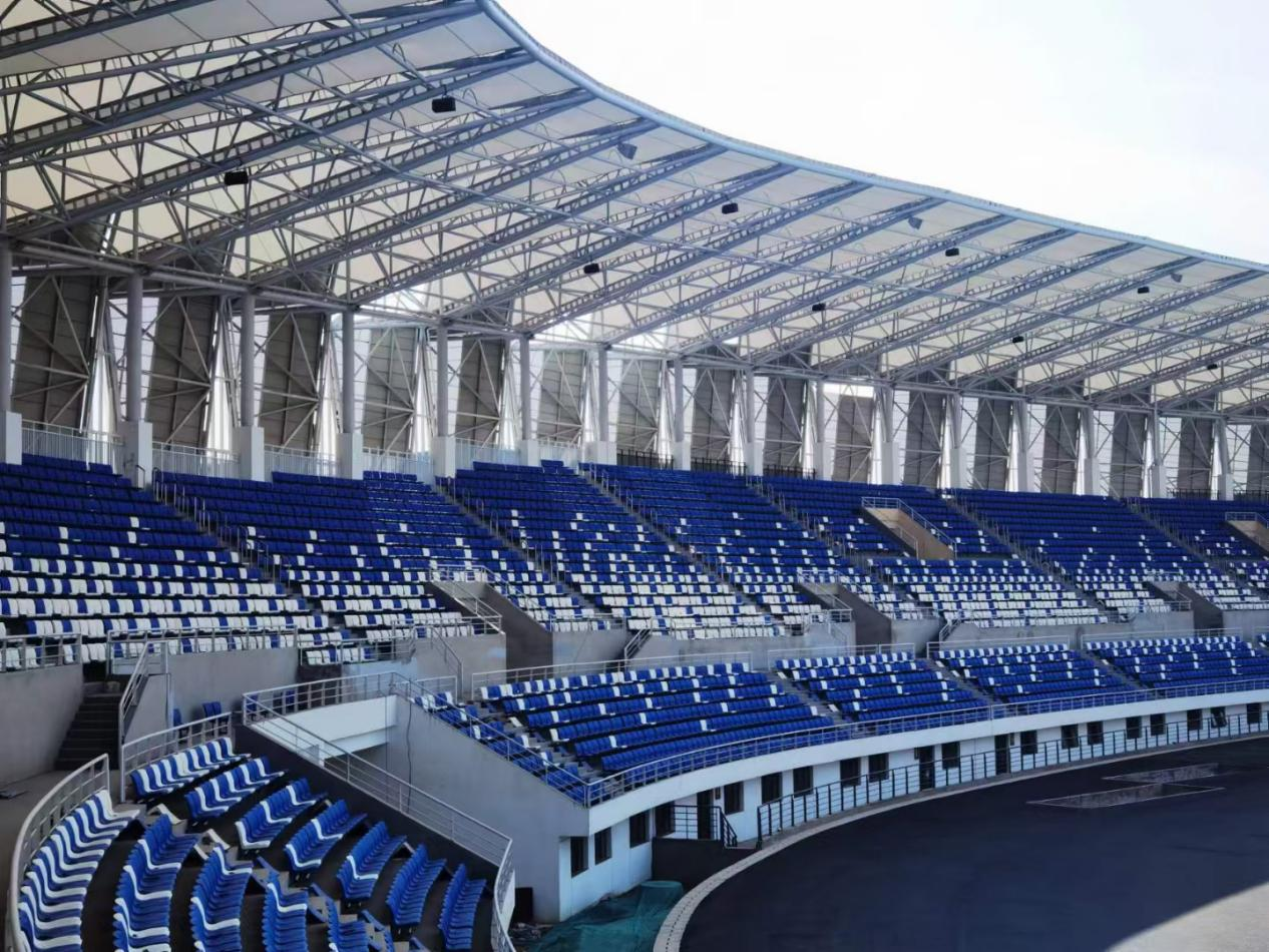 武威市体育场建设项目工程体量大、工艺复杂、施工难度大、工程程序多,我们在确保落实疫情防控措施的前提下,强化管理、优化流程、抓紧施工,已经完成土建工程、钢结构工程、灯塔工程、膜结构工程和看台座椅工程。项目正按照时间节点有条不紊加快建设,目前运动场地草坪、塑胶铺设工程及室外配套工程正在有序推进中。