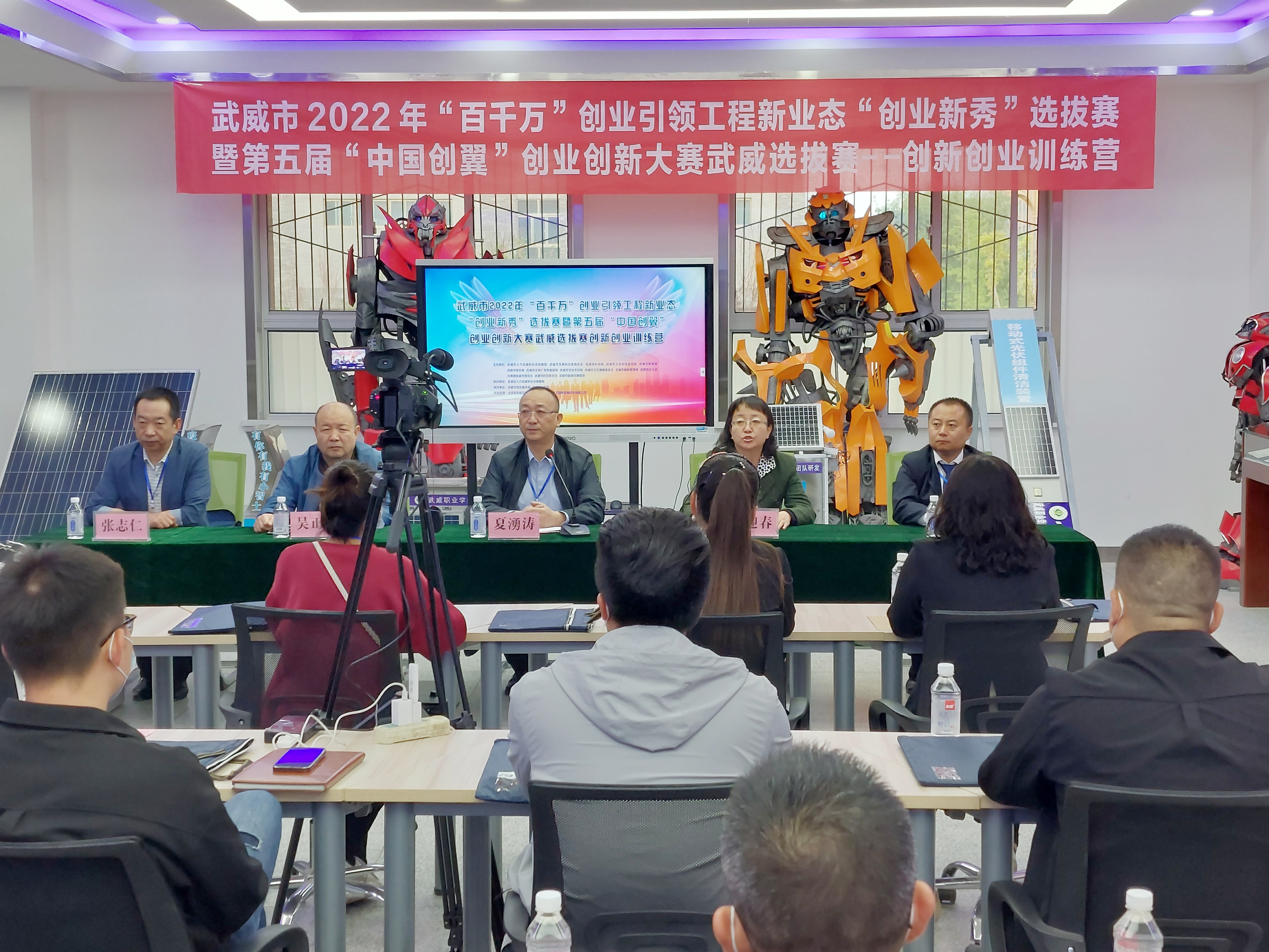 5月8日,由武威市人社局、发改委、就业局等14个部门共同主办的武威市 2022 年“百千万”创业引领工程新业态“创业新秀”选拔赛暨第五届“中国创翼”创业创新大赛选拔赛创新创业训练营在我校成功举办。武威市就业局副局长夏湧涛,学校党委委员、副校长田迎春出席开营仪式,全体参赛队员以“线上”+“线下”的形式参加了本次训练营。