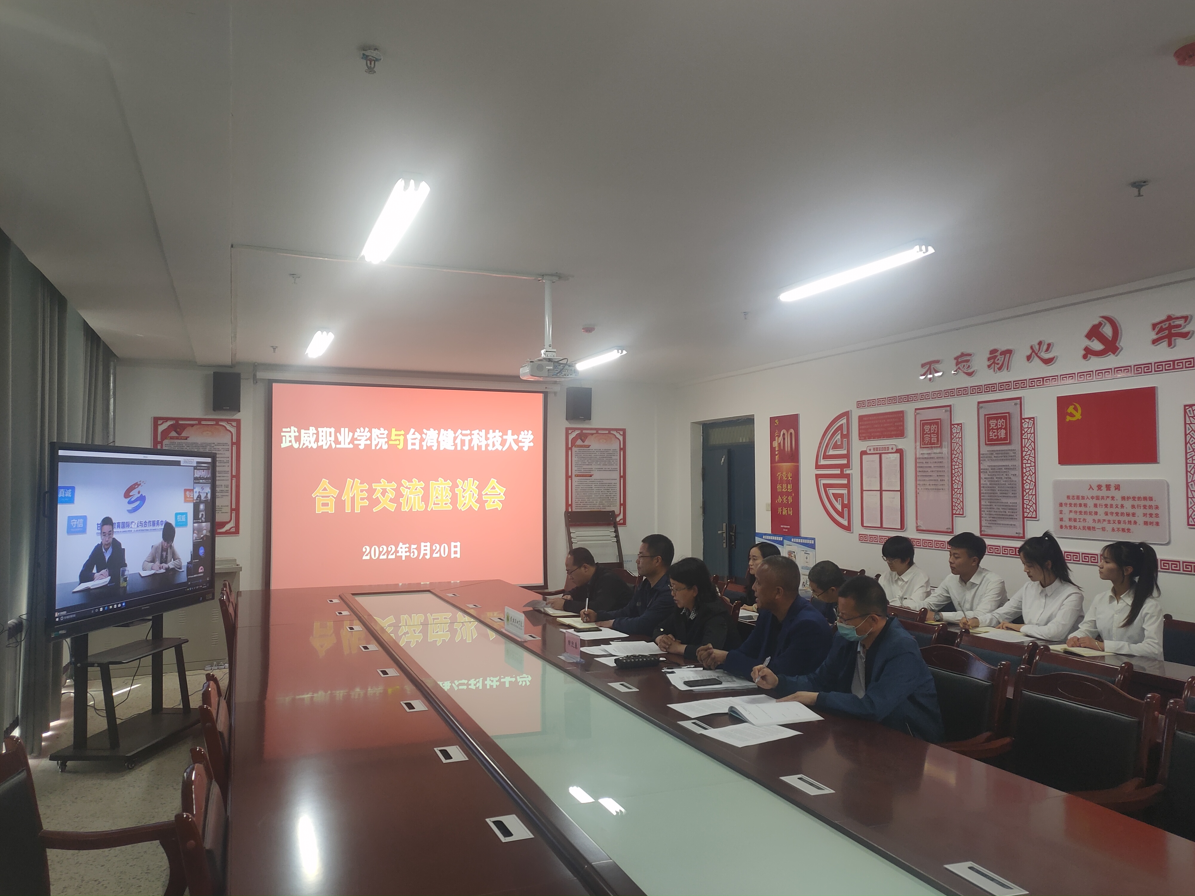 5月20日上午,由甘肃省教育国际交流与合作服务中心牵头举办,武威职业学院与台湾健行科技大学举行合作交流线上座谈会。会议旨在积极探索后疫情时代高等学校间教育国际交流的路径。甘肃省教育国际交流与合作服务中心主任梁翔出席并主持会议。台湾健行科技大学大陆主管彭雅琪、技术合作处处长李國樑、土木工程系主任詹益臨,学校党委委员、副校长田迎春、国际合作与交流处处长潘从民、经济管理学院院长张伯成及省级“双高建设”计划光伏工程技术专业群、旅游管理专业群项目负责人员参加会议。