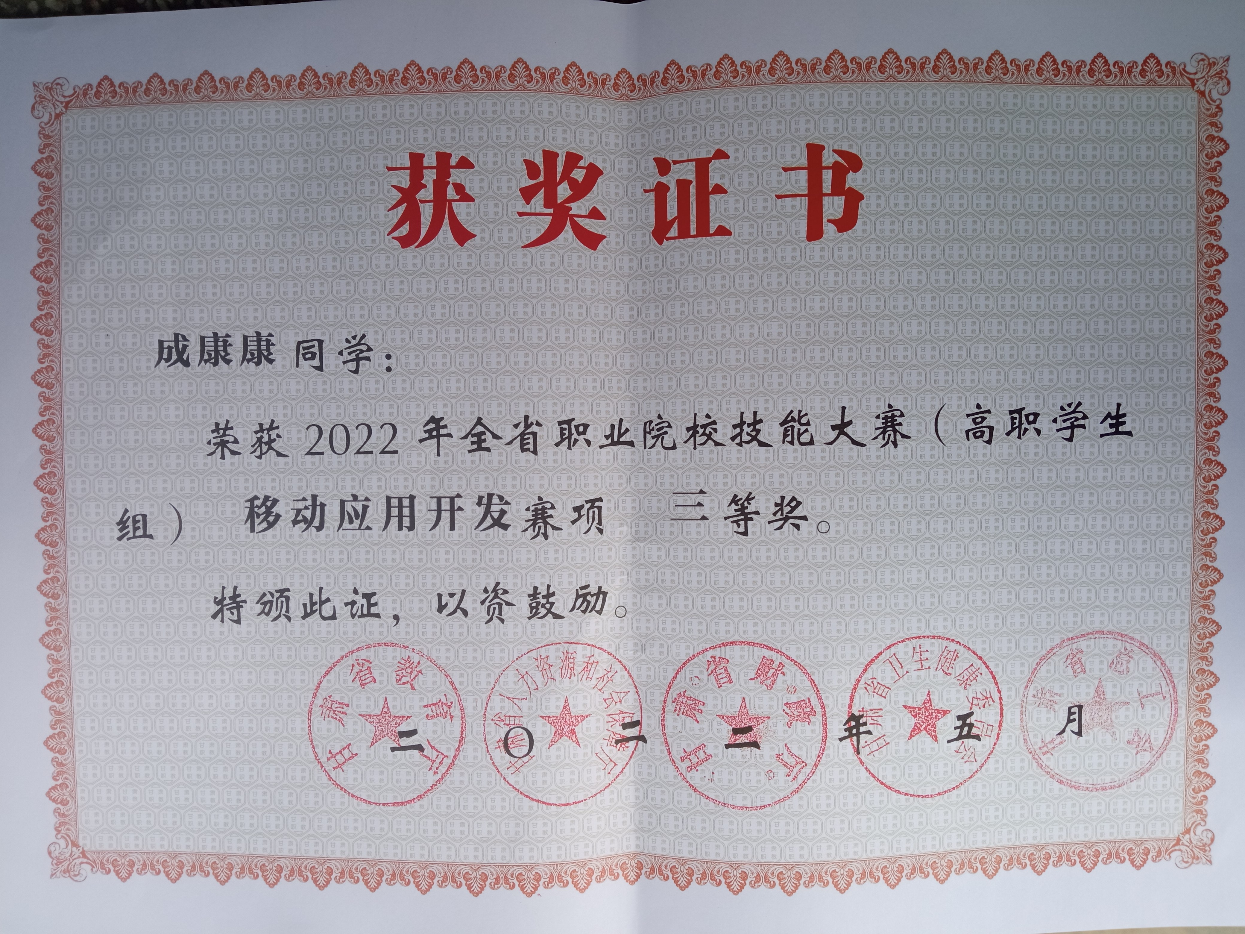 4月26日,2022年甘肃省职业院校技能大赛移动应用开发赛项在武威职业学院举办,信息技术学院在该赛项中获学生组一等奖、三等奖各1项。