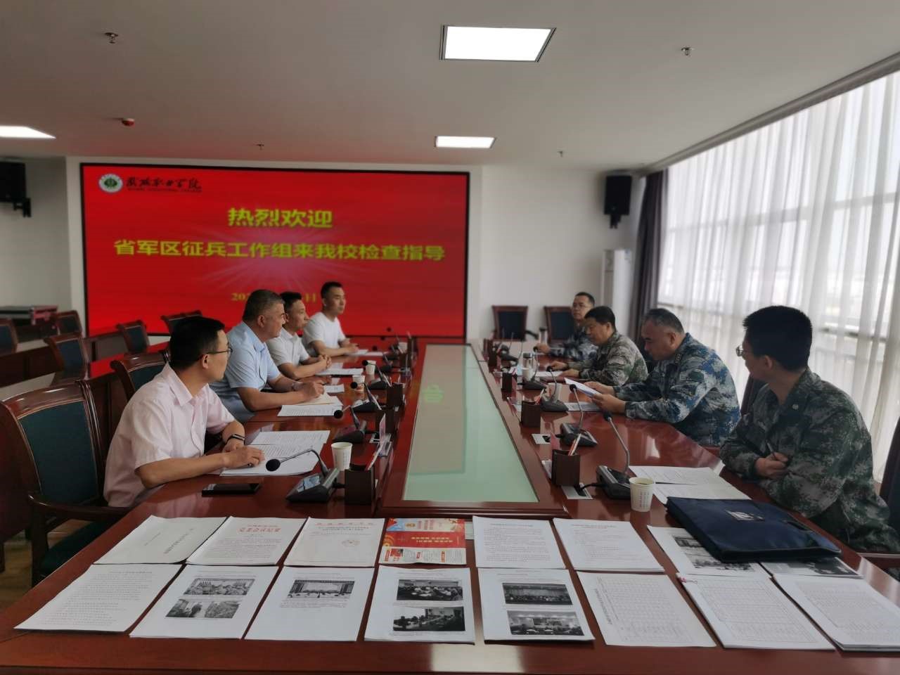 6月6日上午,甘肃省军区动员局大校副局长姚晖一行来学校调研高校毕业生征兵工作。武威军分区大校副司令员吴冲,学校党委委员、副校长王守云一同调研。