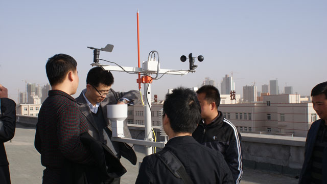 本次培训旨在提高教师对新进实验设备的熟悉程度,解答实验过程存在的问题。设备厂家北京中鼎科技有限公司的技术人员为各位参加培训的老师进行了讲解和介绍。此次新进的实验设施包括太阳能光伏发电应用平台、太阳能光热集热器、气象监控站、太阳辐射能测量平台、集热管性能检测平台等专业相关的实验设备。厂家的技术人员演示了太阳能光伏发电设备在太阳能蓄电池、太阳能离网并网发电方面的应用,并展示了气象监控站实时监控的气象数据。老师们在技术人员的带领下来到了气象监控设备及太阳能辐射能测量设备安放的平台,近距离的观察了监控设备的安装和运行,并询问了监控设备的使用和维护的注意事项。