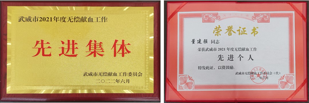 喜讯┃我校无偿献血工作受到武威市表彰