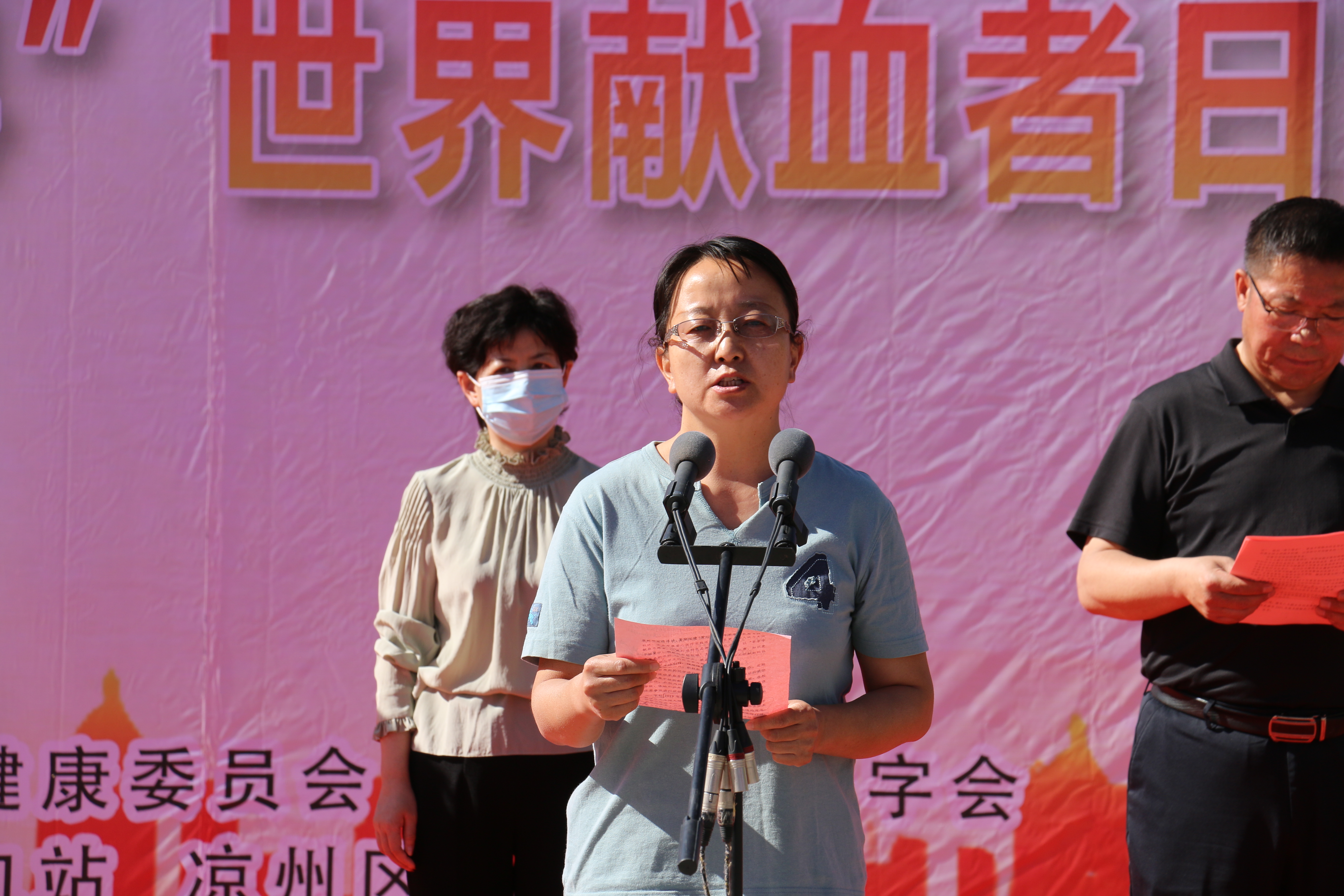 6月14日上午,由市卫健委,市红十字会主办,市中心血站、凉州区卫健局承办的“献血是一种团结行为。加入我们, 拯救生命”庆祝第十九个世界献血者日主题宣传活动在市文化广场隆重举行,市人大常委会副主任刘光美、市政协副主席赵晓晖、市政府副秘书长李怀金出席活动。学校党委委员、副校长田迎春参加活动,并代表学校发言。