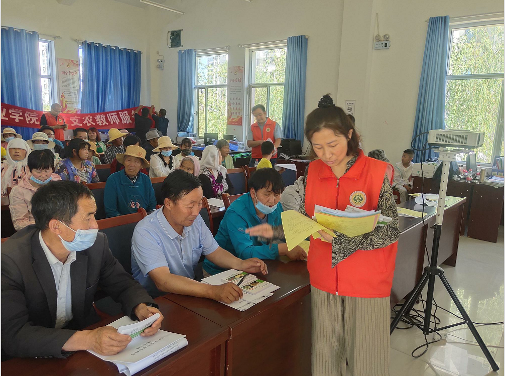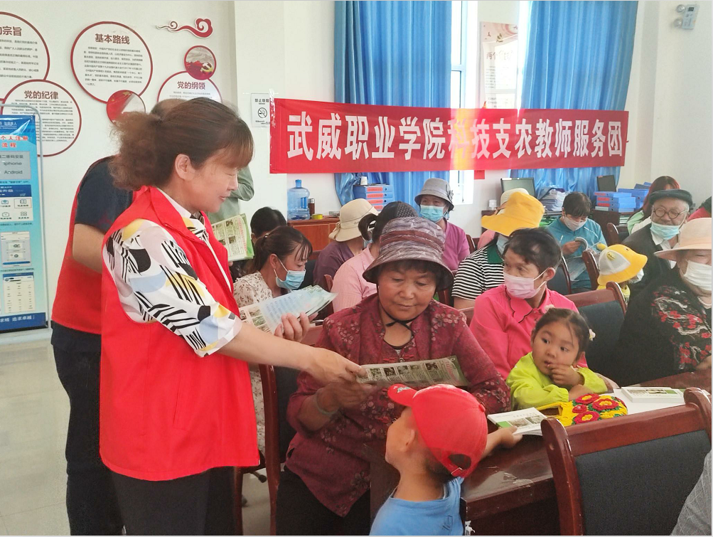 科技支农教师服务团现场发放《武威市林果产业种植技术手册》《武威市药材种植技术手册》《武威市日光温室绿色蔬菜高效生产技术手册》《食用菌、马铃薯种植关键技术手册》《中药材栽培及病虫害防治宣传册》《农作物秸秆综合利用技术手册》《畜禽粪污废弃物资源化利用技术》540册。