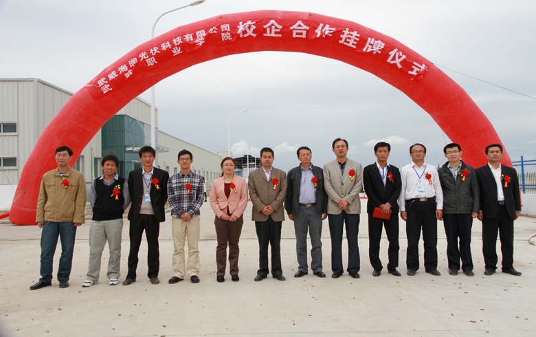 2012年9月24日下午,在武威新能源装备制造基地海润光伏科技有限责任公司,隆重举行武威职业学院与武威海润光伏科技有限责任公司校企合作挂牌仪式。出席本次活动的领导有学院副院长王宏、副院长翟存祥、武威新能源装备制造产业园区管委会主任助理胡巍、武威海润光伏科技有限责任公司总经理谈进、学院招生就业处副处长李亚梅。能源工程系师生代表、园区管委会、海润光伏科技有限责任公司相关人员共计60余人参加了活动。