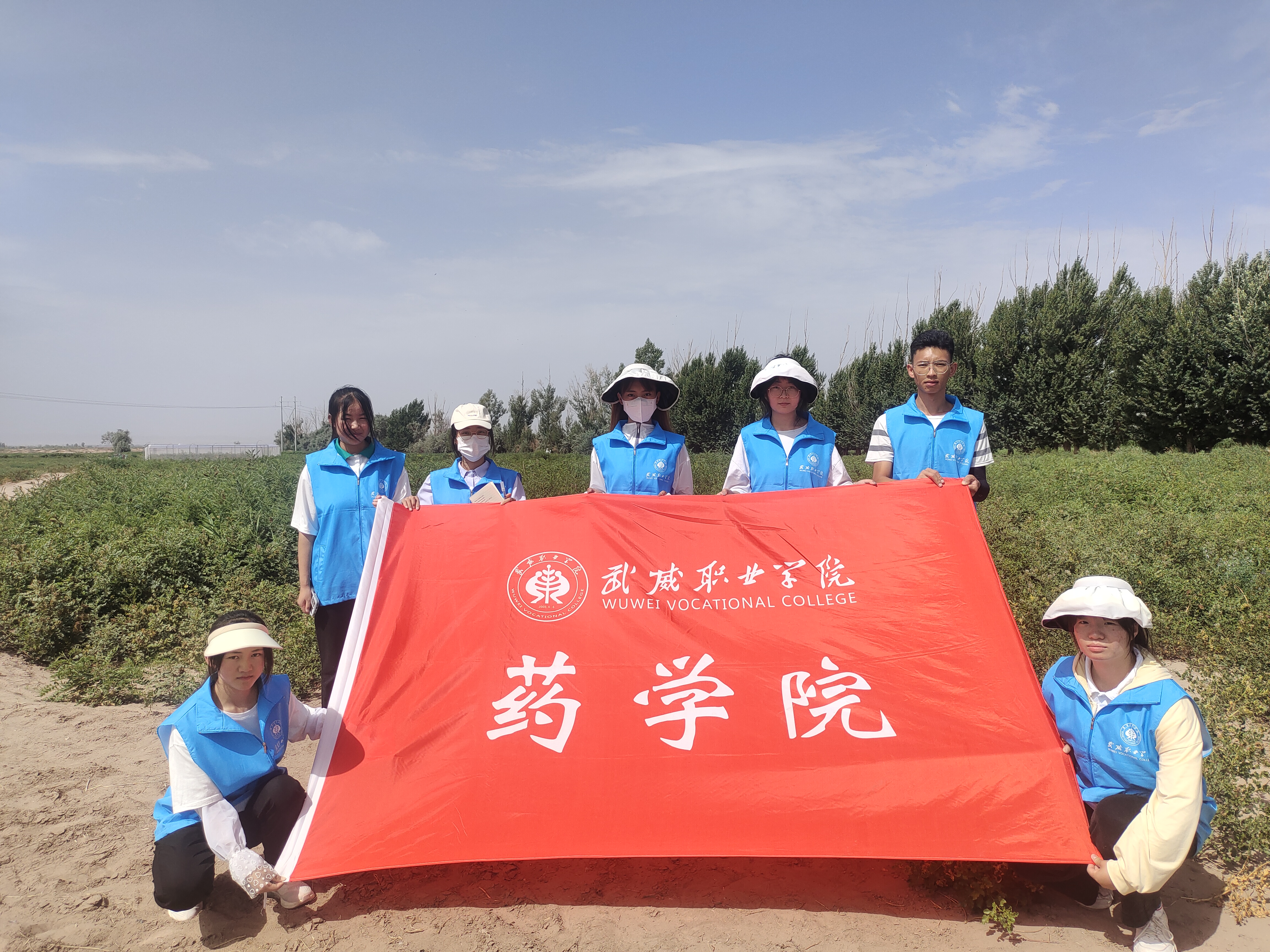 2022年7月10日,早上7点集合完毕,老师与麻黄种植基地负责人取得联系,征得同意后,药学院团队在老师的带领下赴民勤麻黄种植基地进行调研,为了更好的了解中国中药麻黄种子培育及国家项目情况,麻黄种子种植培育情况,为加强甘肃中药材规范化种植提供思路。