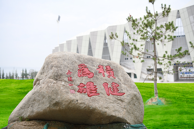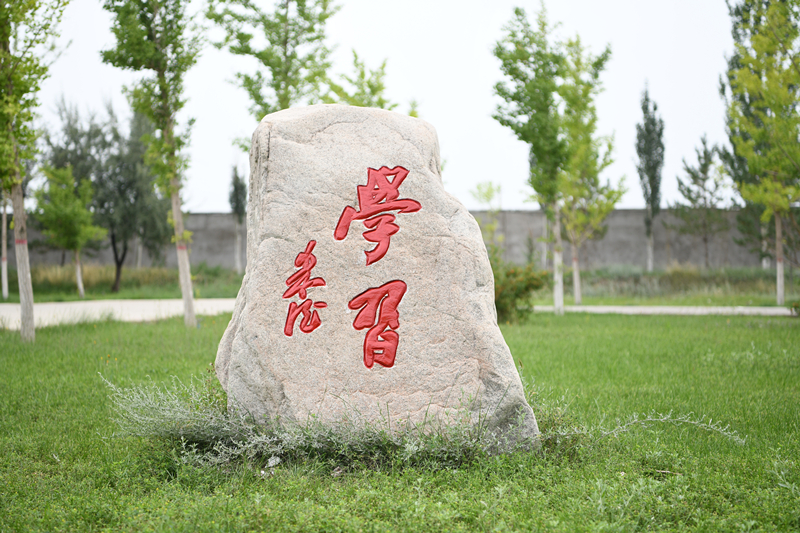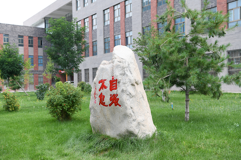 校园里的景观石均采集自历史名人或书法大家书写的志在鼓励学子们好学上进,努力成长为国之栋梁的书法作品,既彰显着校园文化底蕴,也深深融入校园环境,成为了校园一道美丽风景线,以一种特殊的方式激励师生成长,影响着师生言行举止。
