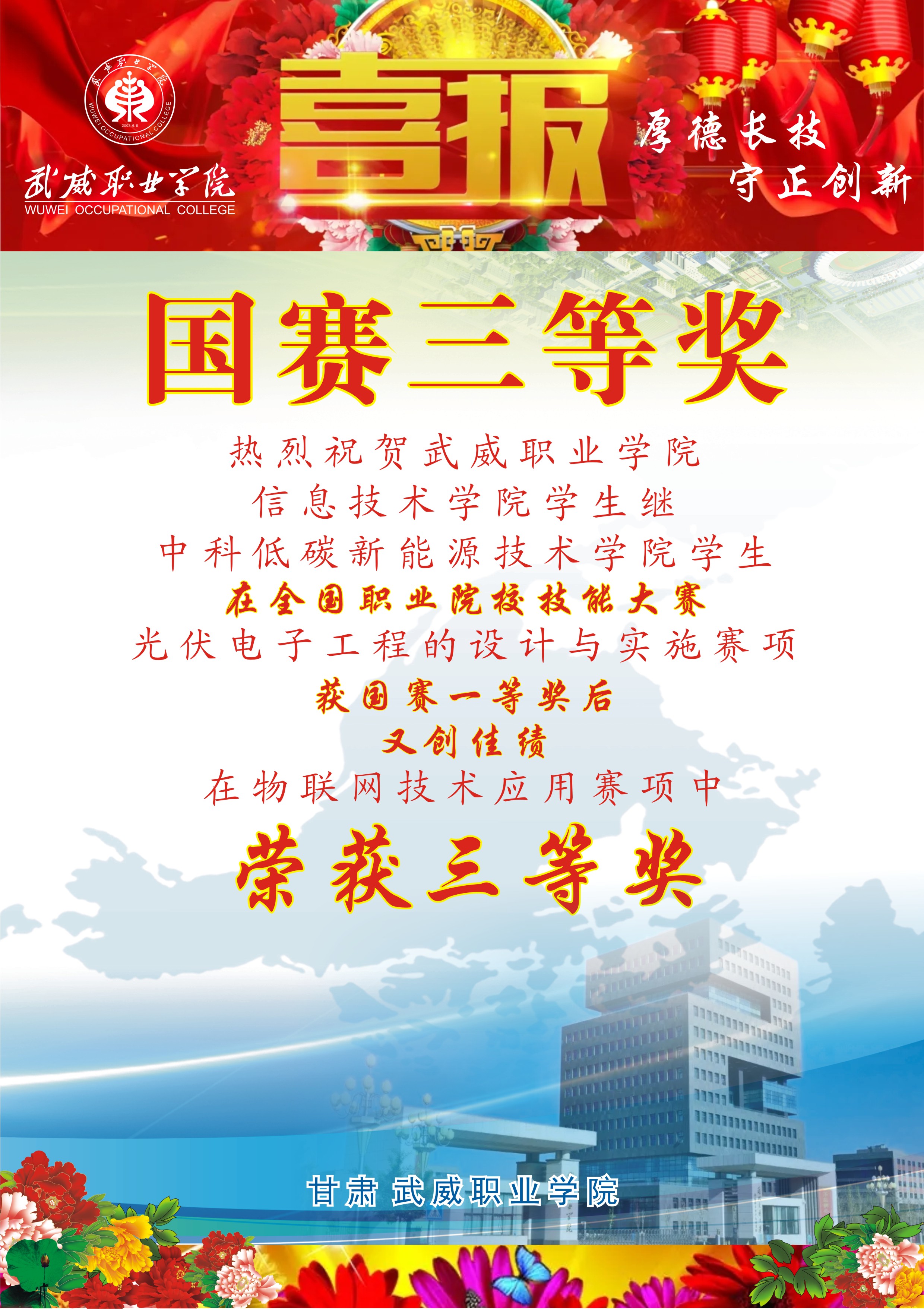 武威职业技术大学位于中国旅游标志之都、中国葡萄酒城、全国历史文化名城、最美中国文化旅游城市——武威,是国家骨干高等职业院校、省级双高校、省级示范校、省级优质校。