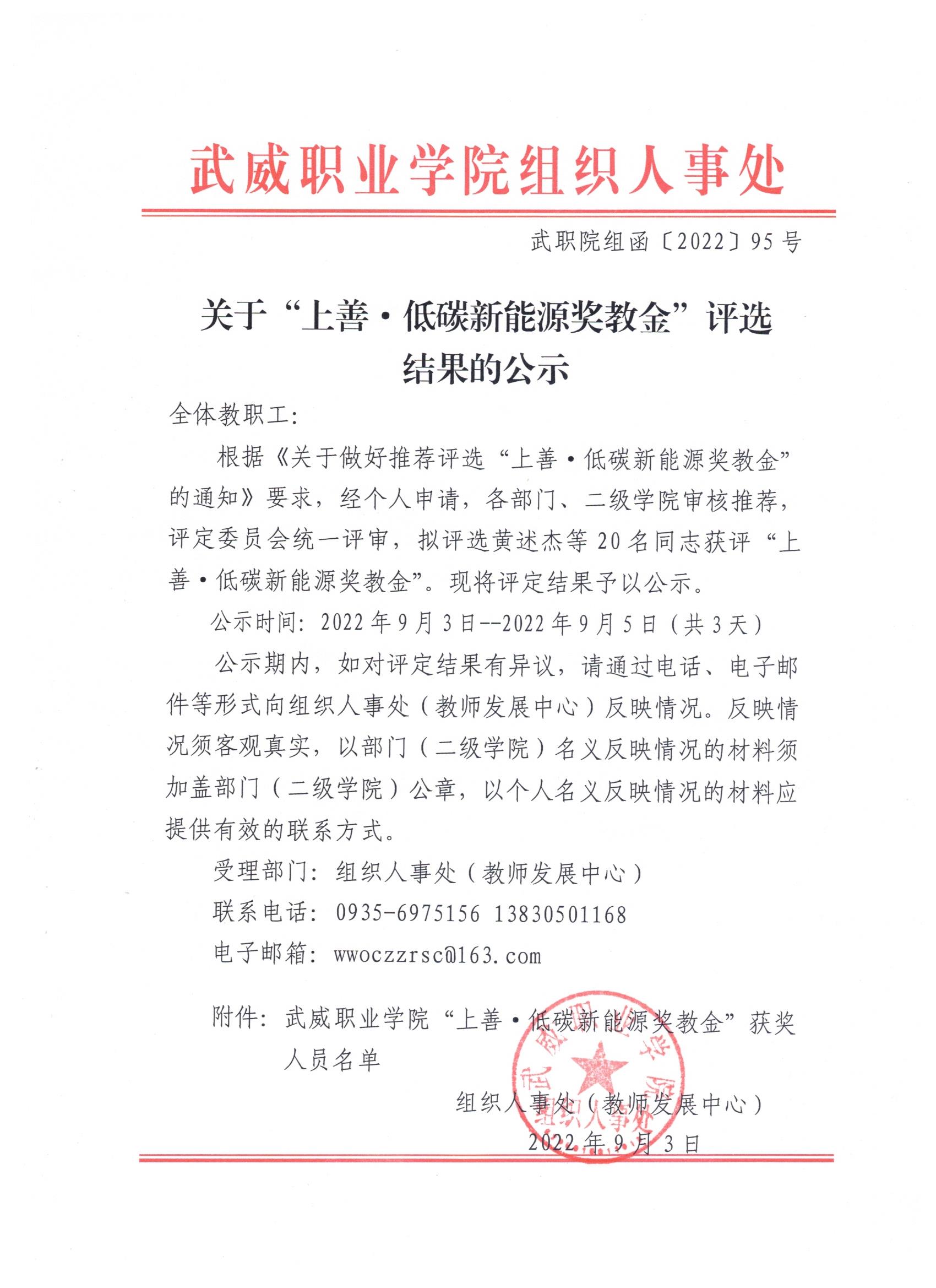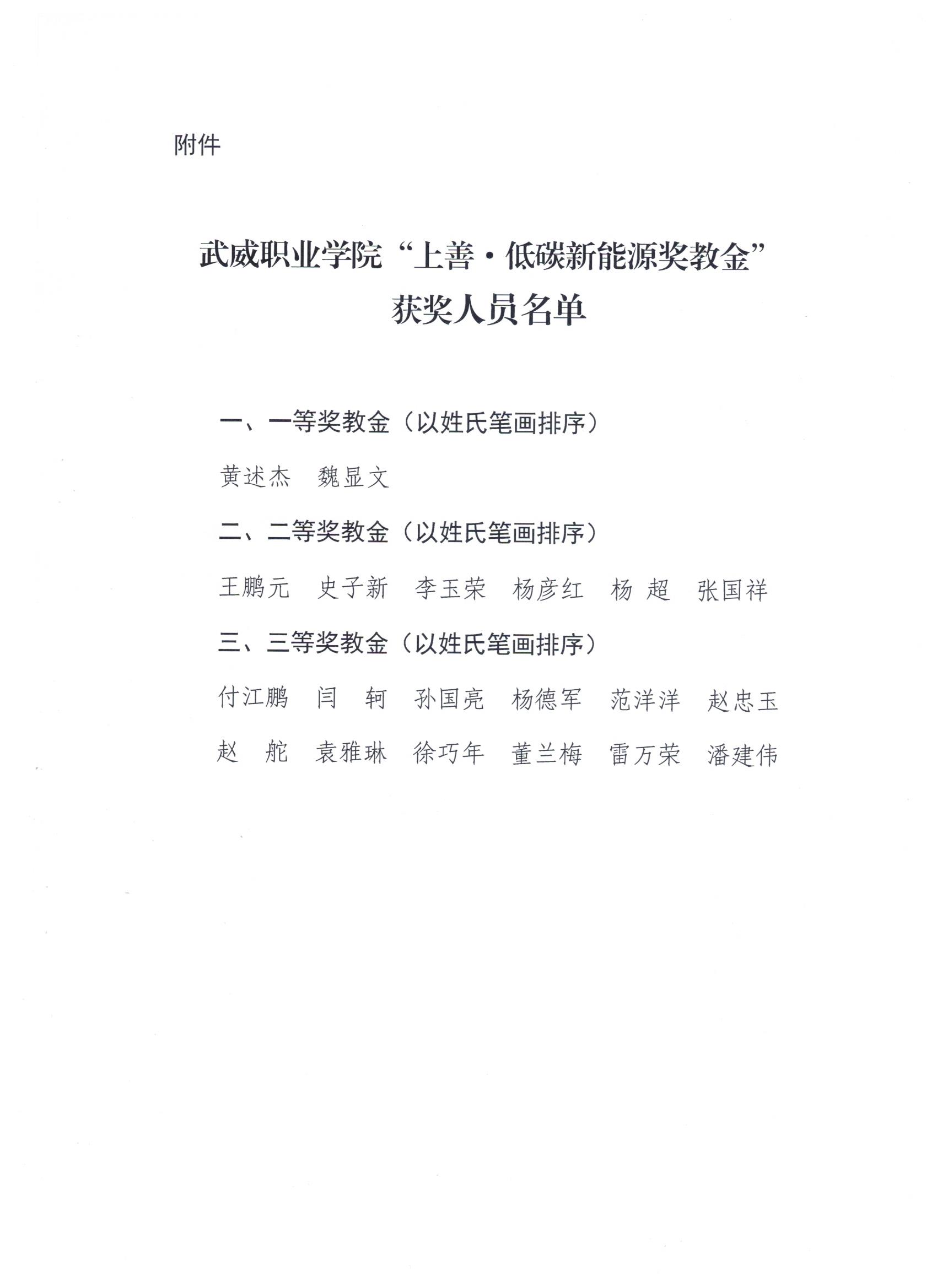 关于“上善·低碳新能源奖教金”评选结果的公示