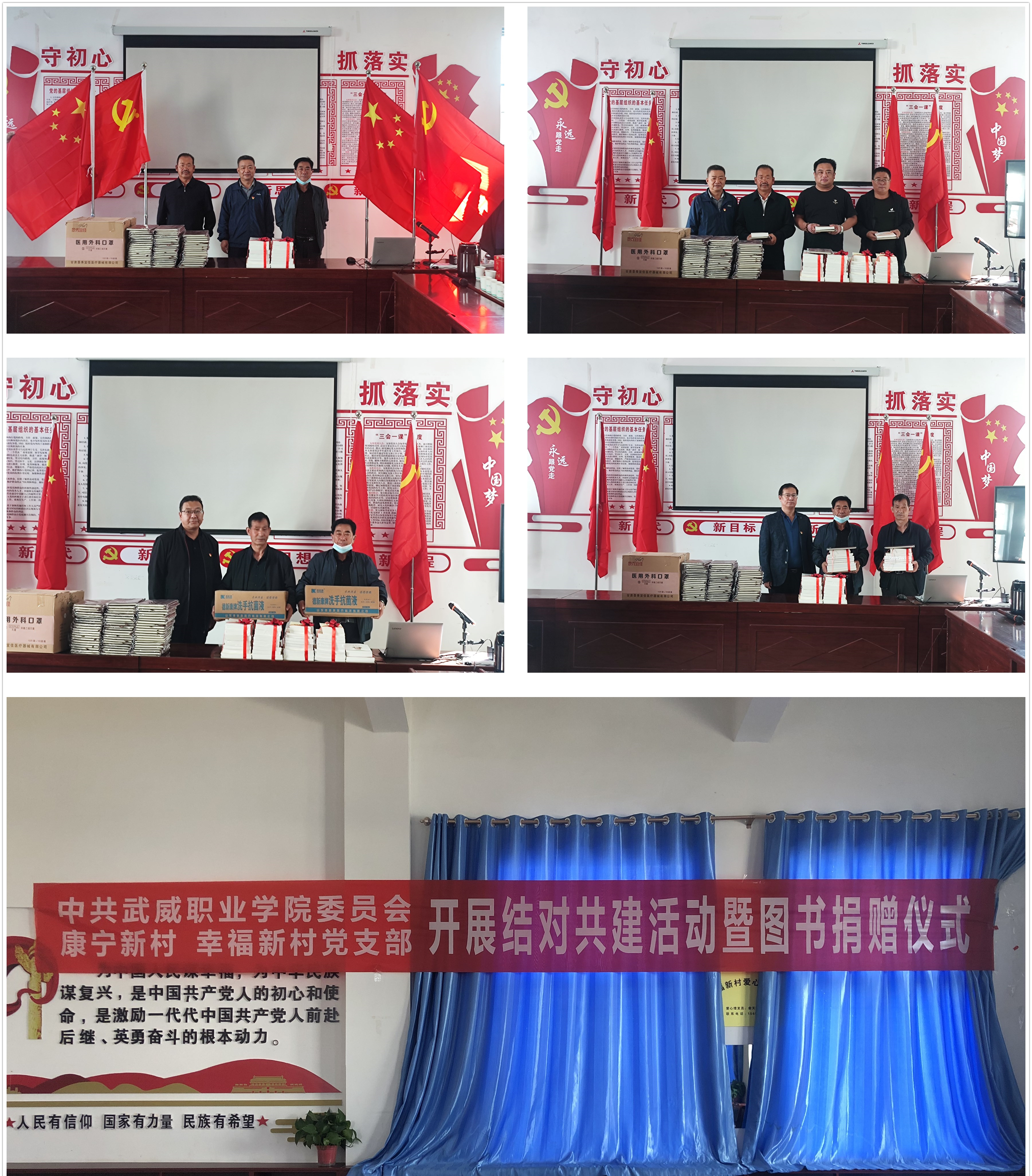 为进一步加强帮扶村基层党组织建设,助推乡村振兴各项事业发展,9月22日,学校党委书记、校长赵明,党委委员、纪委书记、监察专员陈晓煜,党委委员、副校长张开礼等一行到古浪县横梁乡康宁新村和幸福新村开展结对共建活动暨图书捐赠仪式。
