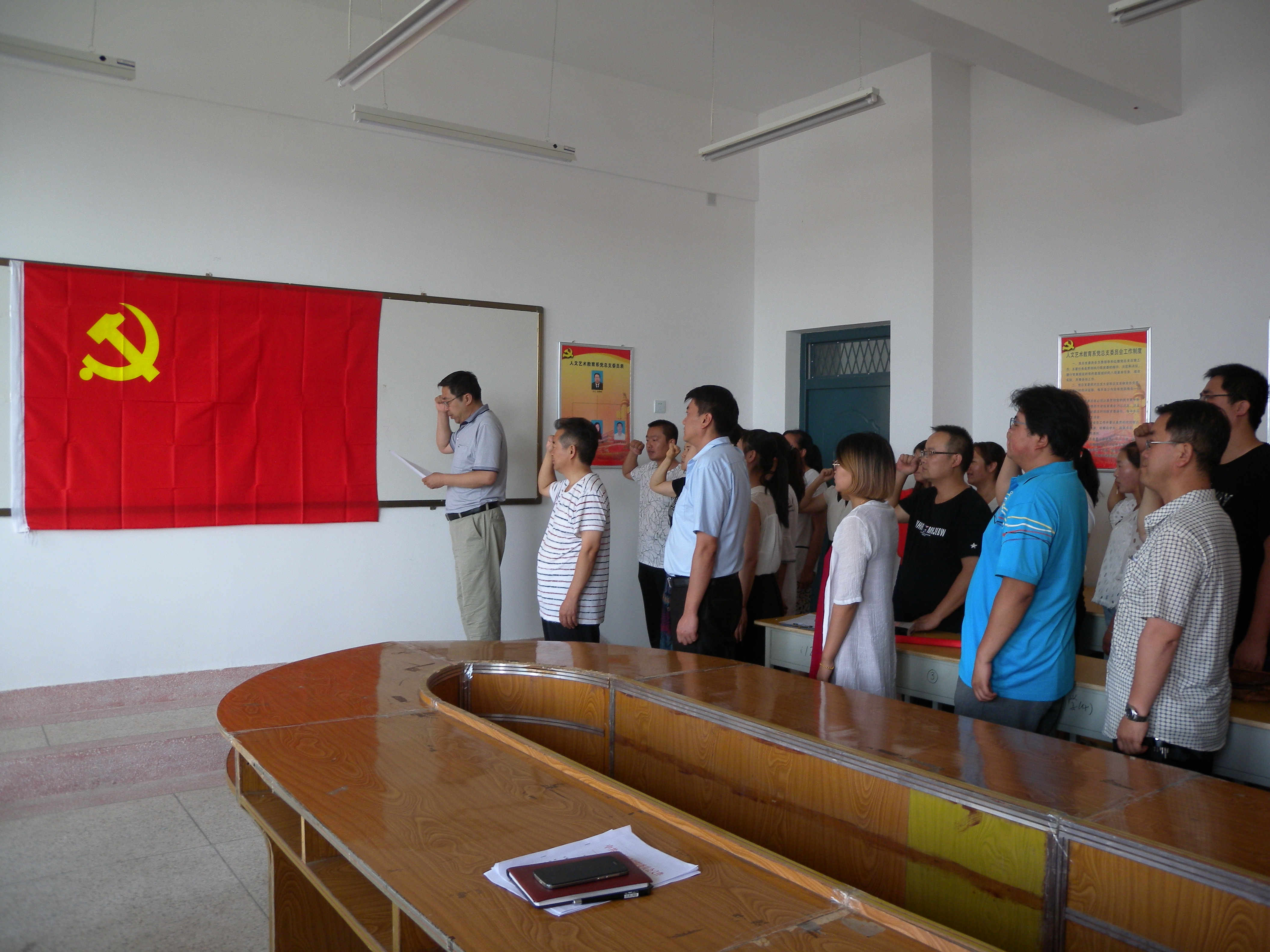党总支书记胡静峰带领全体党员面对鲜红的党旗,重温入党誓词:“我志愿加入中国共产党,拥护党的纲领,遵守党的章程……”。庄严肃穆的重温入党誓词活动,使每一位党员再一次接受心灵的洗礼,进一步坚定了立场信念。