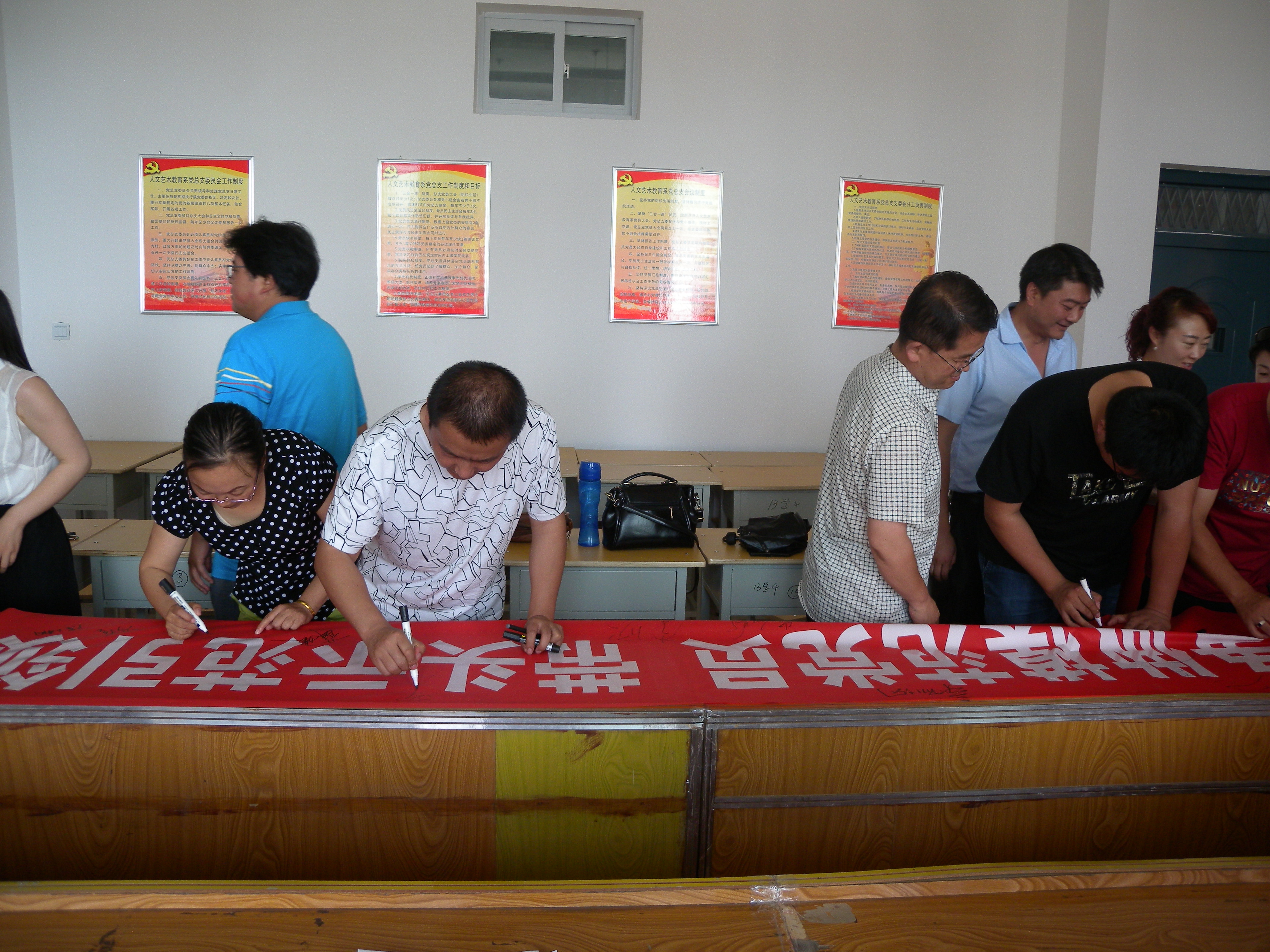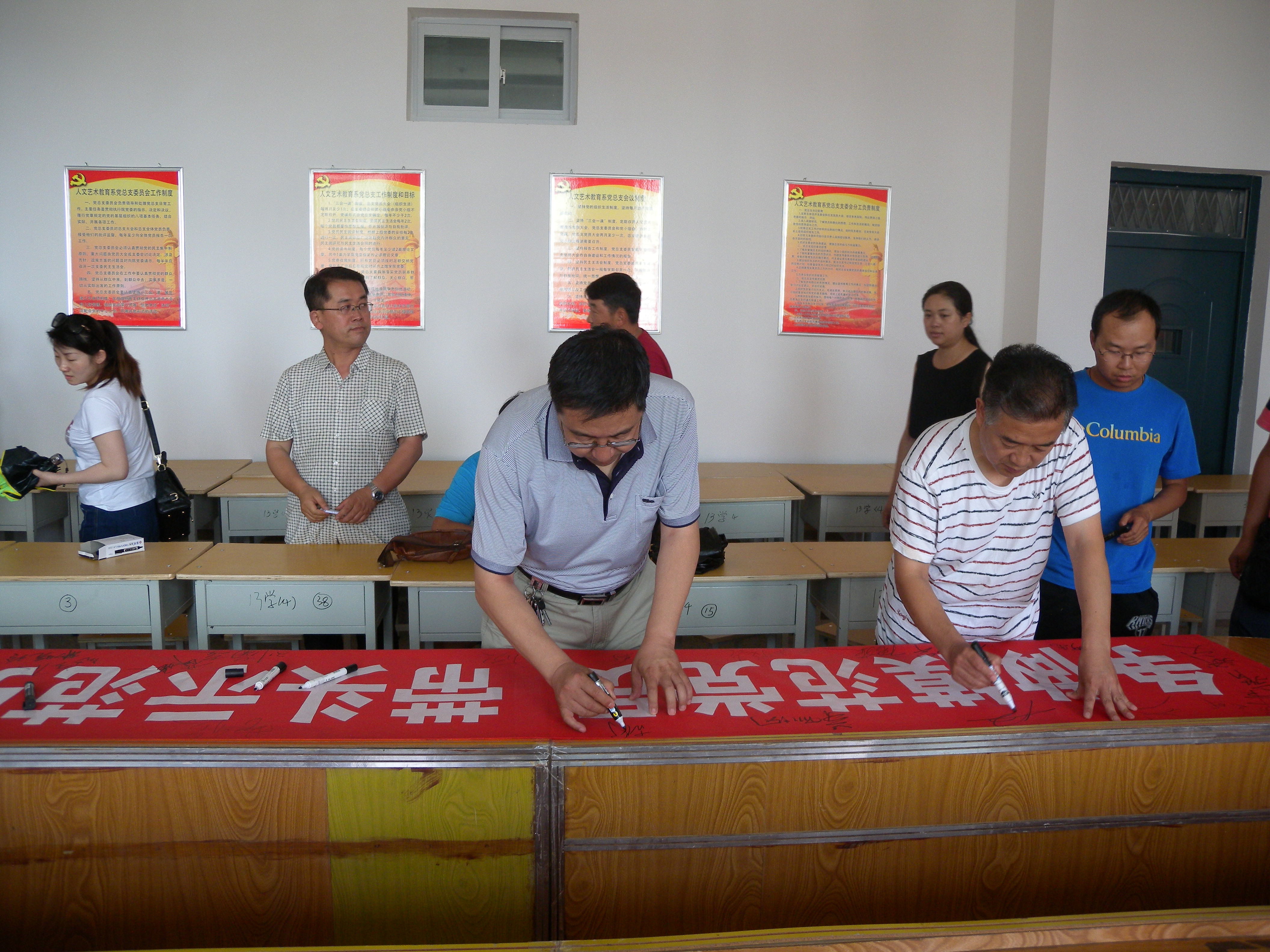 会后,全体师生党员在“争做模范党员,带头示范引领”的横幅上进行了签名活动。本次签名活动,旨在发挥“一个党员就是一面旗帜”的带头示范引领作用,激励广大党员做“两学一做”的忠实践行者,使“两学一做”学习教育取得实实在在的成效。