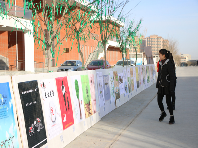 12月28日,人文艺术教育系“伸一双手 护一片绿”主题公益海报展在大学生活动中心前广场举行。学院宣传统战部部长王继林,人文艺术教育系党总支书记胡静峰出席开展仪式,美术教研室主任董有国及部分师生参加了展览。