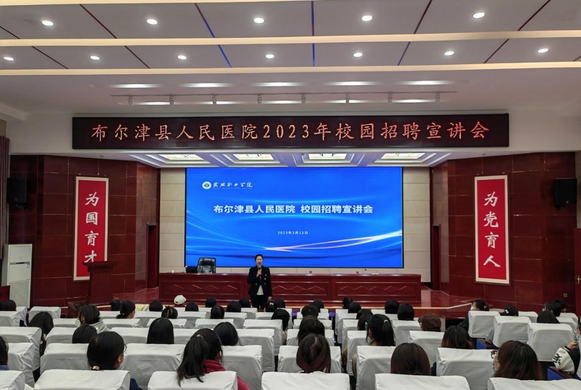 3月12日签约仪式结束后,布尔津县人民医院党委书记李娟在学生发展中心举行了校园招聘宣讲活动,护理学院约200名师生参加,部分学生现场达成实习就业意向。