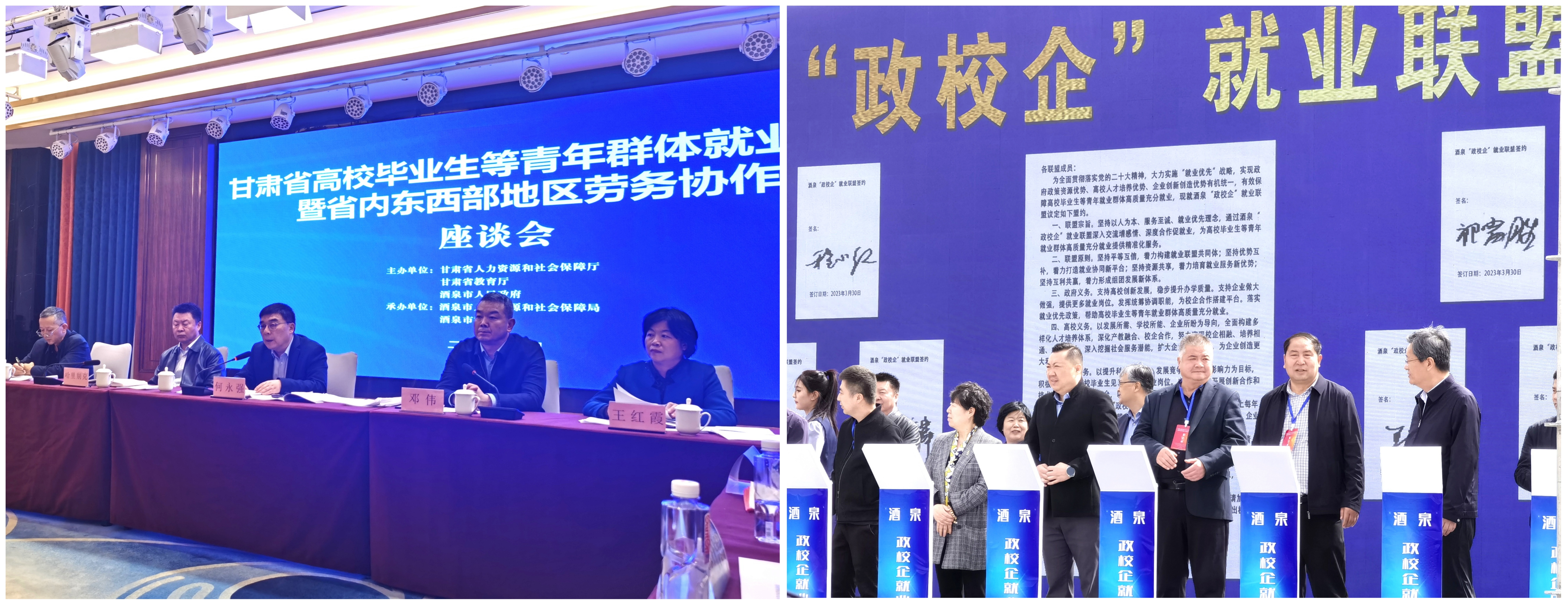 3月30日,王守云带领招生就业处、合作教育办负责人董鹏,在酒泉市参加了由甘肃省人社厅、教育厅组织举办的“甘肃省高校毕业生等青年群体就业暨省内东西部地区劳务协作”座谈会与招聘会,并进行了政校企就业联盟签约活动。王守云代表武威职业学院在会上做了题为“政校企联动深化校企合作,促进毕业生高质量充分就业”的交流发言。