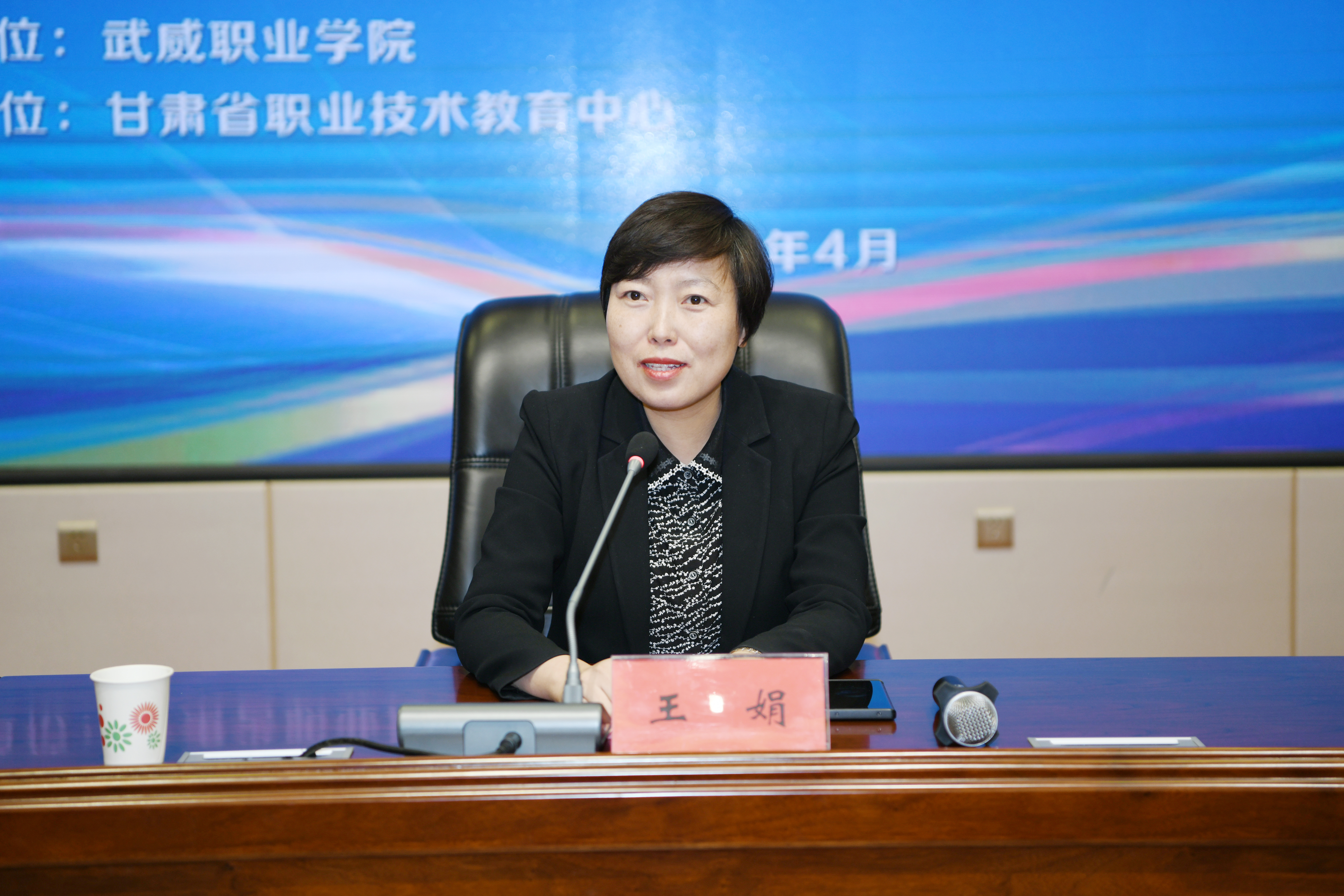 武威市教育局党组书记、局长王娟宣布2023年“中银杯”甘肃省职业院校技能大赛武威职业学院赛点开赛。