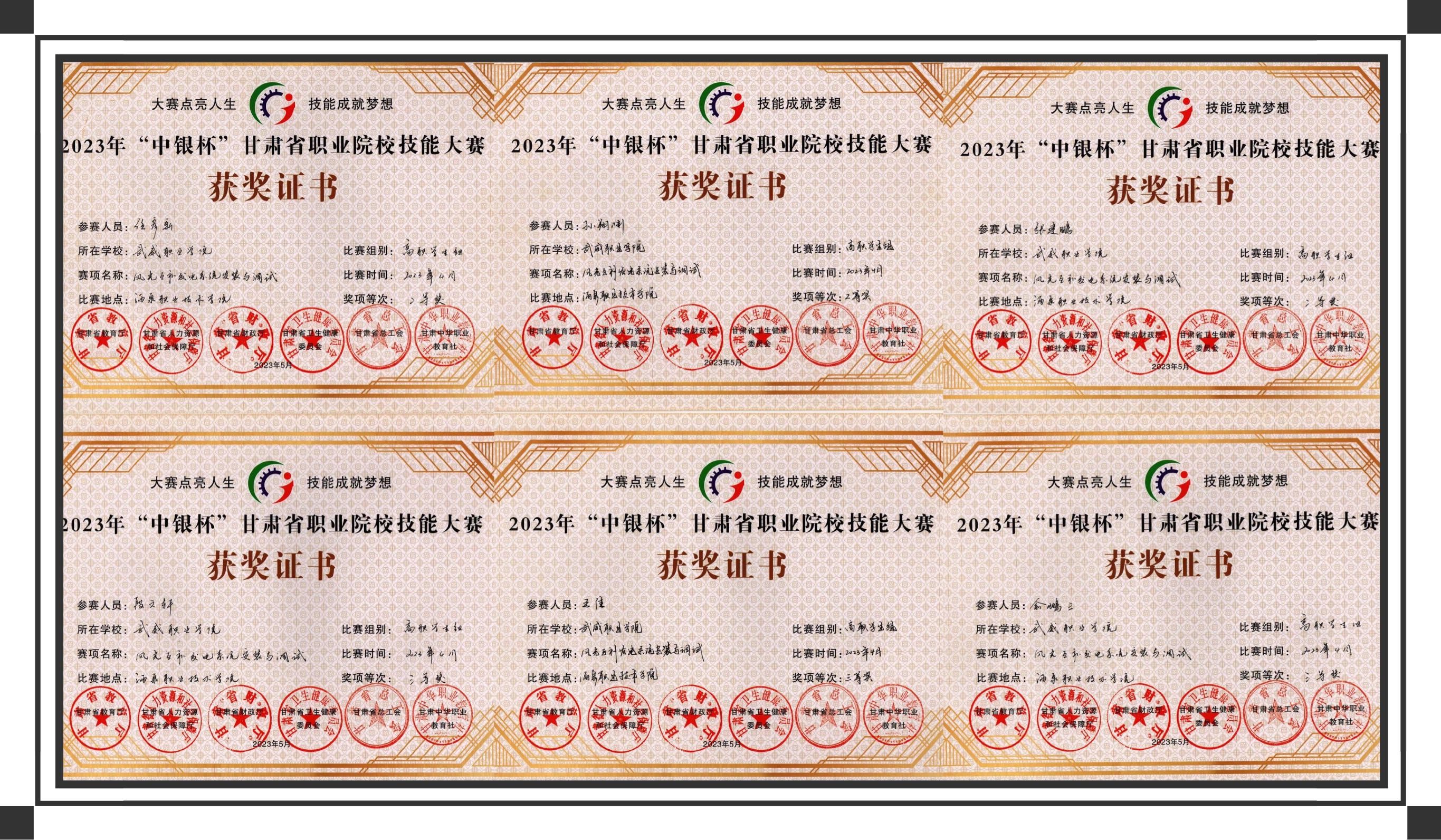 学院在2023年甘肃省职业院校技能大赛“风光互补发电系统安装与调试”赛项中再创佳绩