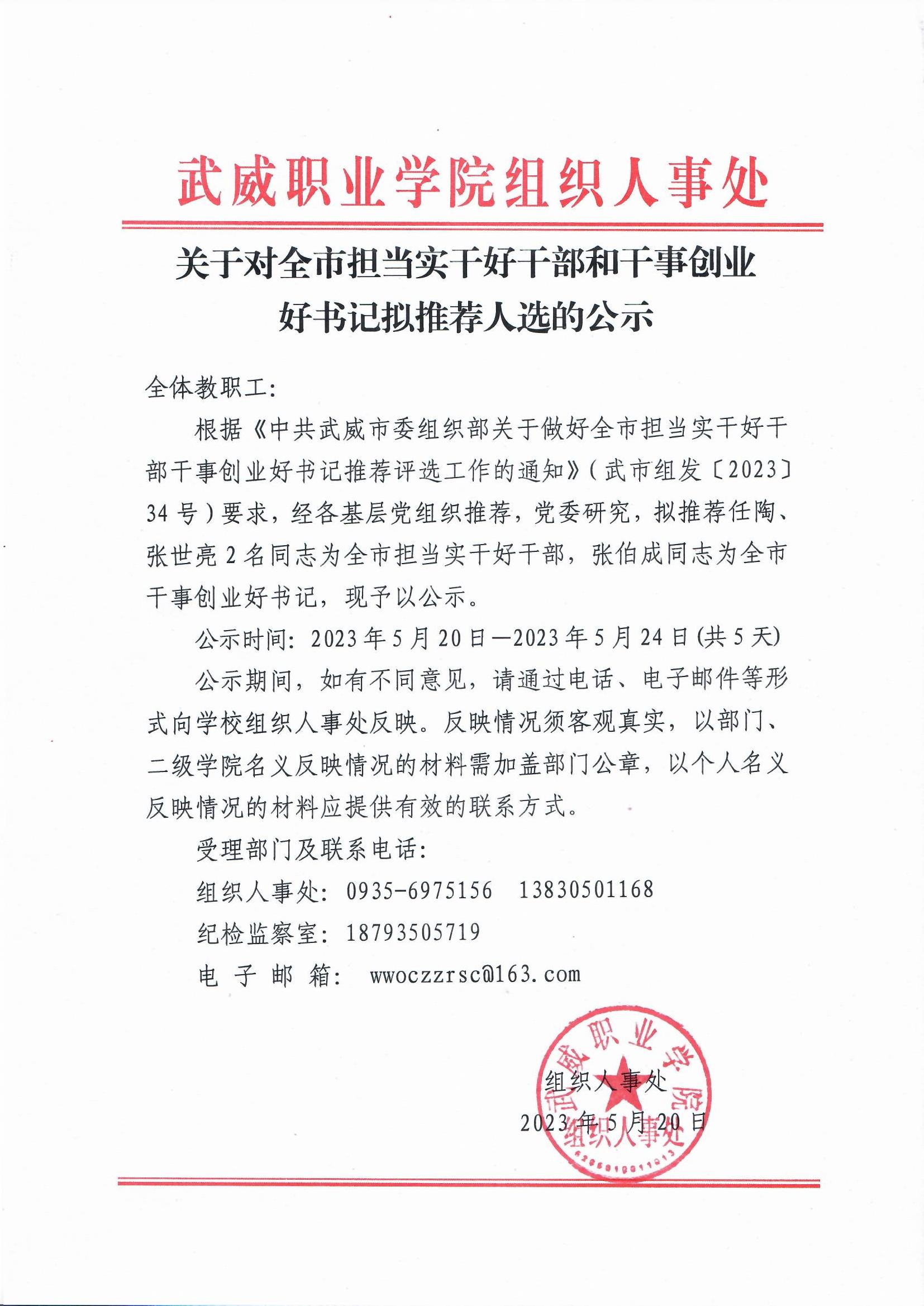 关于对全市担当实干好干部和干事创业好书记拟推荐人选的公示