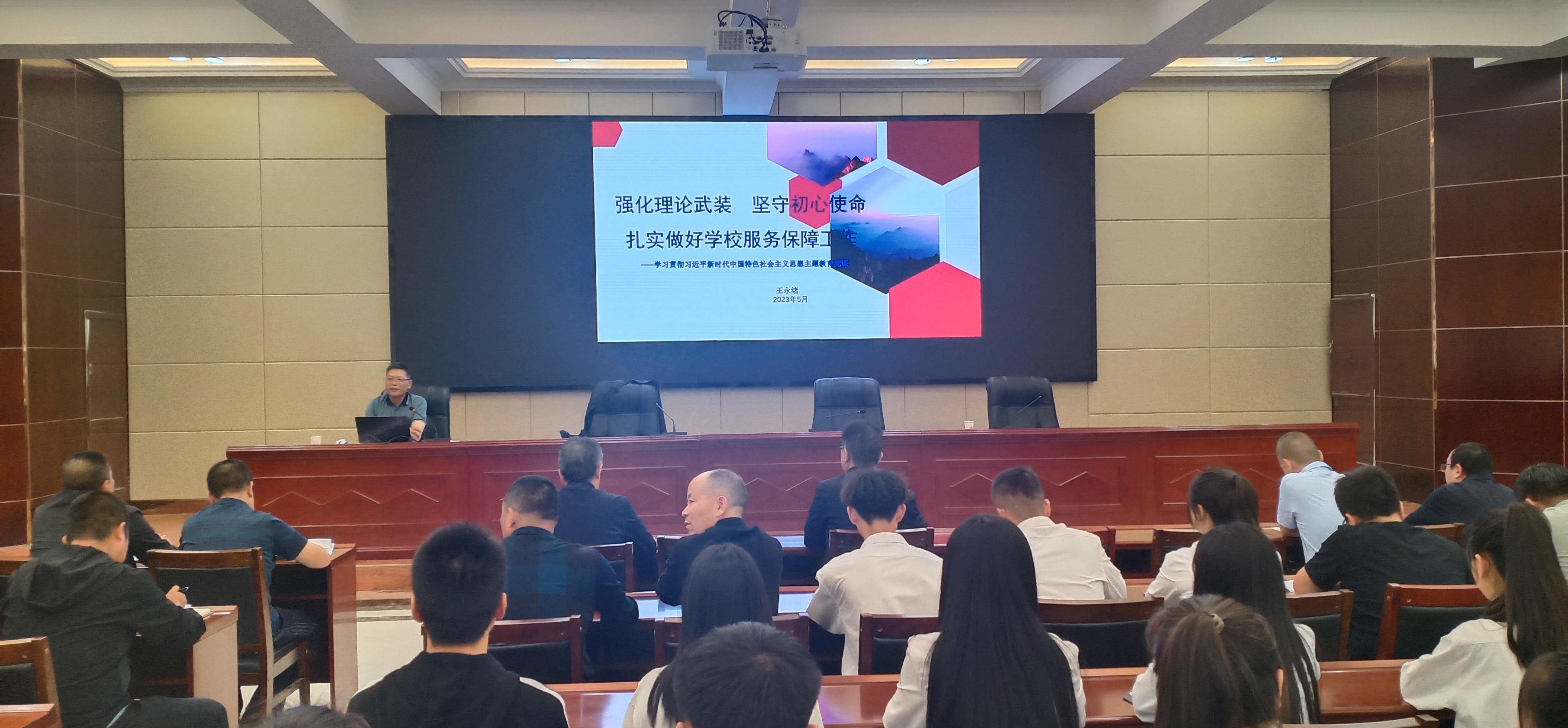 党课紧紧围绕学习贯彻习近平新时代中国特色社会主义思想主题教育,从“全面学习贯彻习近平新时代中国特色社会主义思想”“学习贯彻习近平新时代中国特色社会主义思想收获和体会”“学习贯彻习近平新时代中国特色社会主义思想,扎实推动服务保障工作再提升”等三个方面对学校后勤服务保障工作提出了新要求。