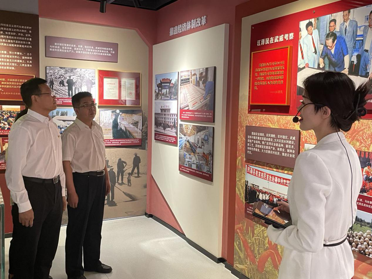 大家在讲解员的讲解下先后参观了序厅、主厅、智慧党建厅、红色文创厅、尾厅和初心讲堂,并观看了红色专题片。展厅全景式展现了武威百年辉煌党史和党的十八大以来,尤其是习近平总书记视察甘肃三年以来武威高质量发展的重大成就。在讲解员的带领下,全体党员重温了武威的发展史和中国共产党人为建设新中国抛头颅、洒热血的峥嵘岁月。大家一边观看,一边聆听关于革命先烈的光辉事迹和红色故事,接受革命传统教育的洗礼,从党的百年伟大奋斗历程中汲取继续奋斗前进的智慧和力量。