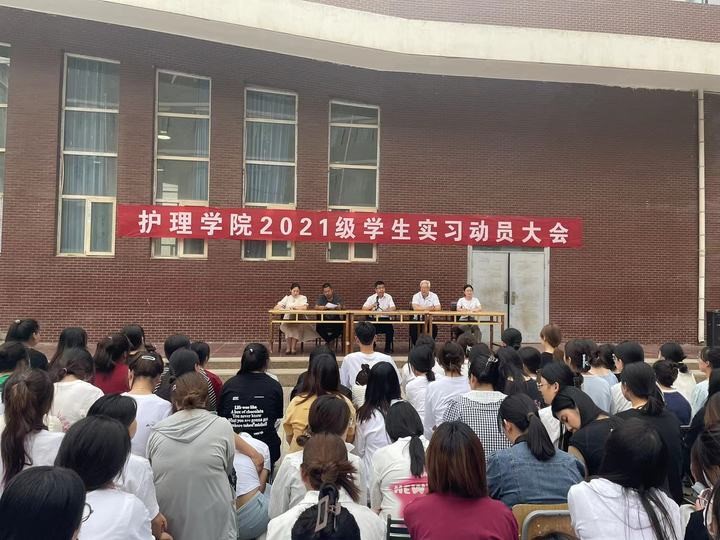 7月10日,护理学院2021级护理、助产专业学生实习前动员大会在学院明远楼北广场成功举办。此次大会旨在提高实习生对实习重要性的认识,明确实习目标和任务,为即将开始的实习生活做好充分准备。学院党总支书记张建辉、团委书记杨杰、辅导员及2021级全体实习学生参加此次大会,会议由杨杰主持。