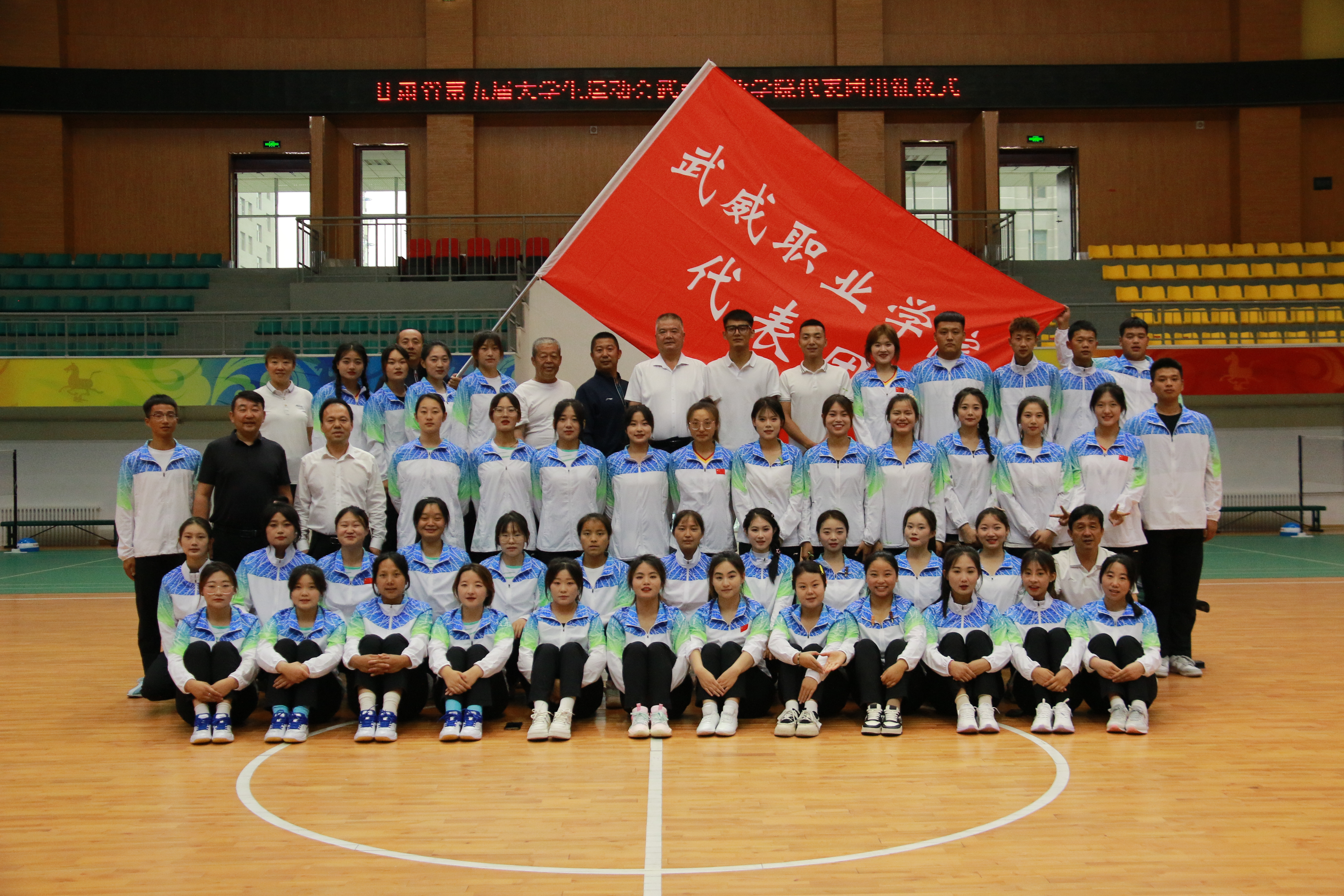 甘肃省大学生运动会是我省大学生四年一届的体育盛会,比赛于7月15日—7月29日在甘肃警察职业学院举行,学校组建了由57名师生组成的代表团,参加女篮、女排、田径、健美操等4个项目的比赛。