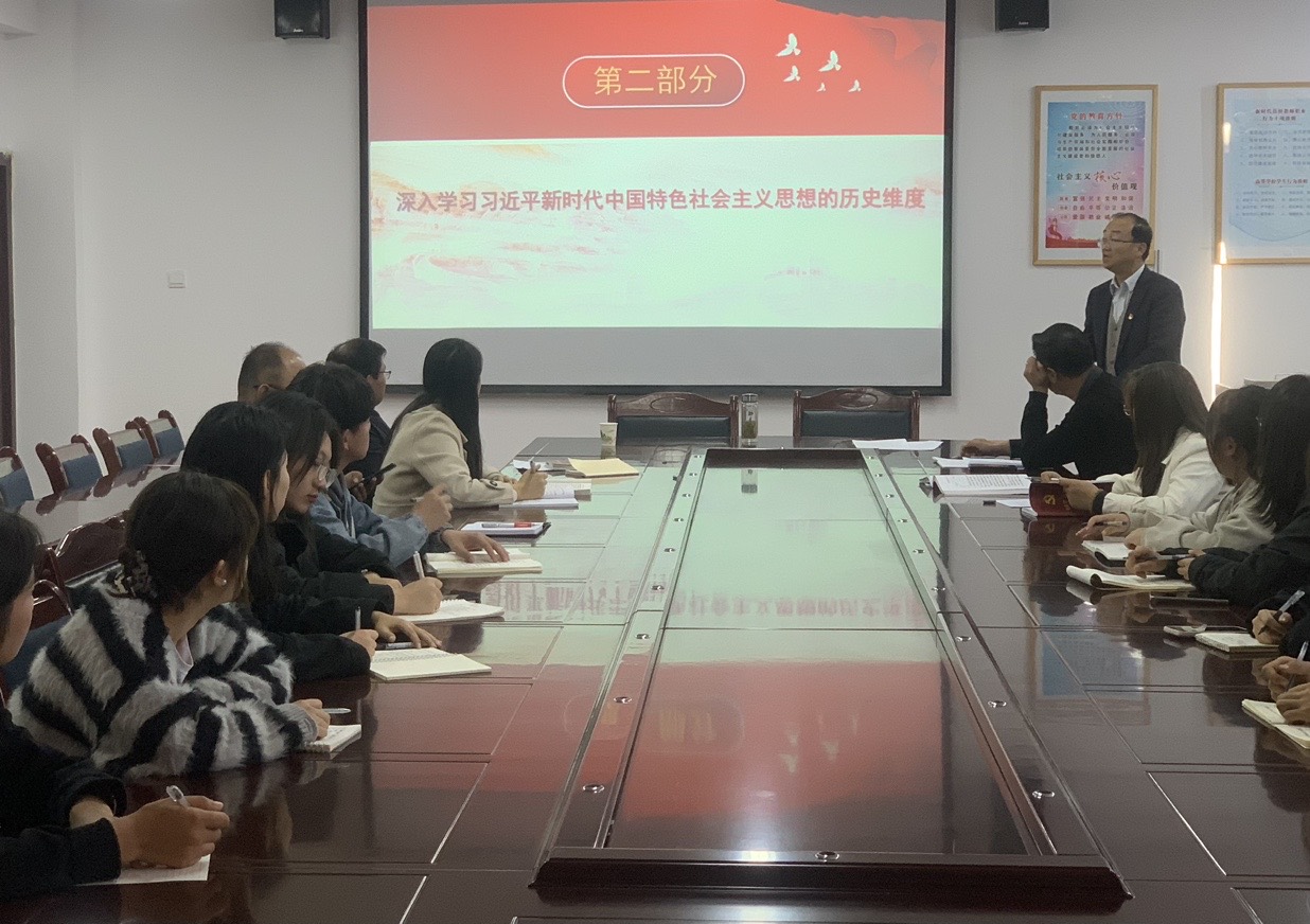 黄文源深入解读了“两个确立”,“新时代新征程党的中心任务”,以及“四个自信”的深刻内涵。带大家深刻学习、领会了习近平总书记关于坚定理想信念、提升思想境界的一系列要求,深刻领悟 “两个确立”的决定性意义。他提出通过此次集体学习,希望全体党员自觉在思想上、政治上、行动上同以习近平同志为核心的党中央保持高度一致,用党的理论武装头脑、指导实践、推动工作。