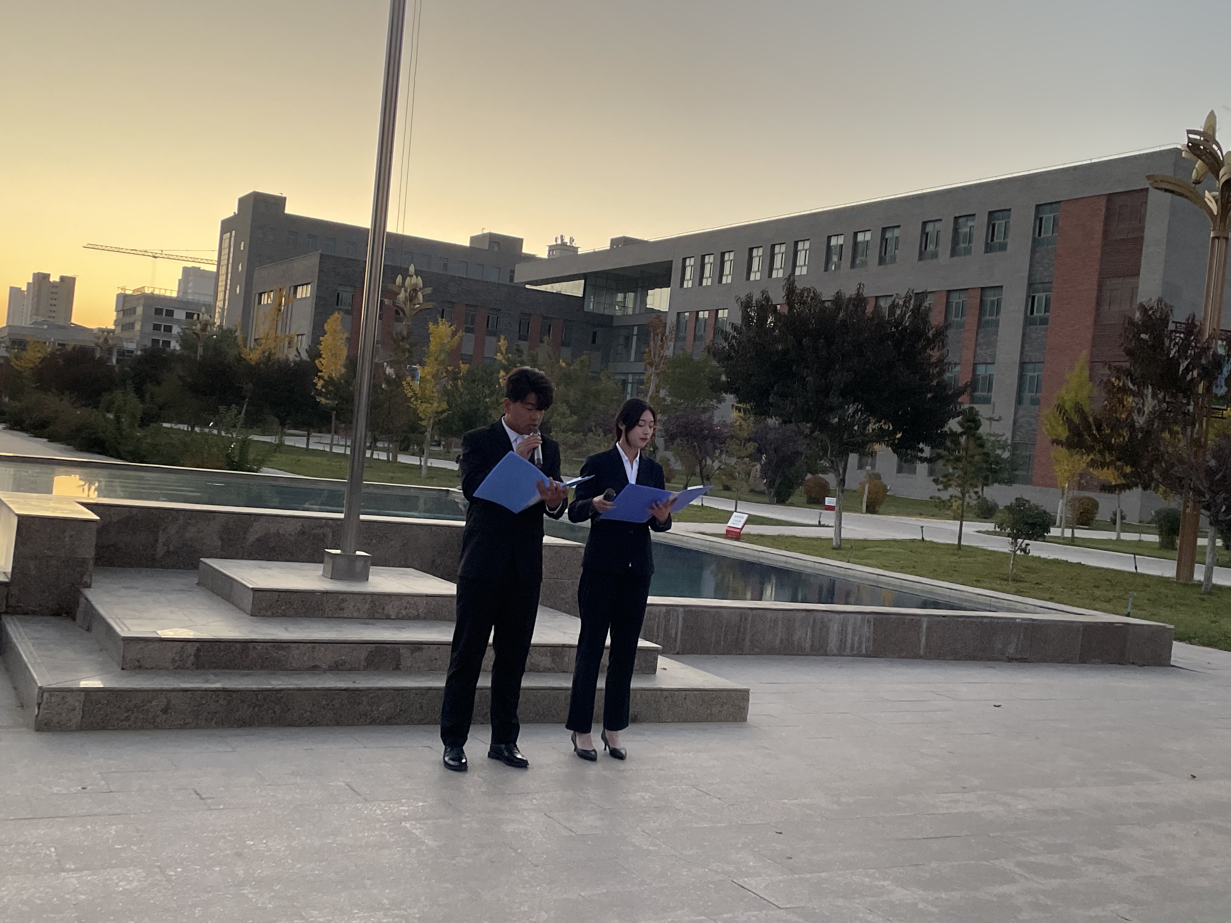 学院学生代表张永儒、吴玮就“明德解行立志,铸就无悔青春”进行国旗下的主题演讲。生逢盛世,当不负盛世,他们号召全体学子不忘初心,牢记使命,树立“青春之我”的奋斗之姿,扛起“强国有我”的青春之责,处在百年未有之大变局中,应拼搏当下,创造属于自己的精彩人生。