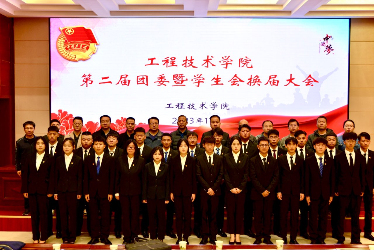 2023年11月14日下午,工程技术学院第二届团委暨学生会换届大会在菁英厅召开。工程技术学院党总支书记梁忠、党总支副书记王铎云、团委书记刘世海、辅导员仲文君、部分教师代表和200余名学生代表参加了本次会议。