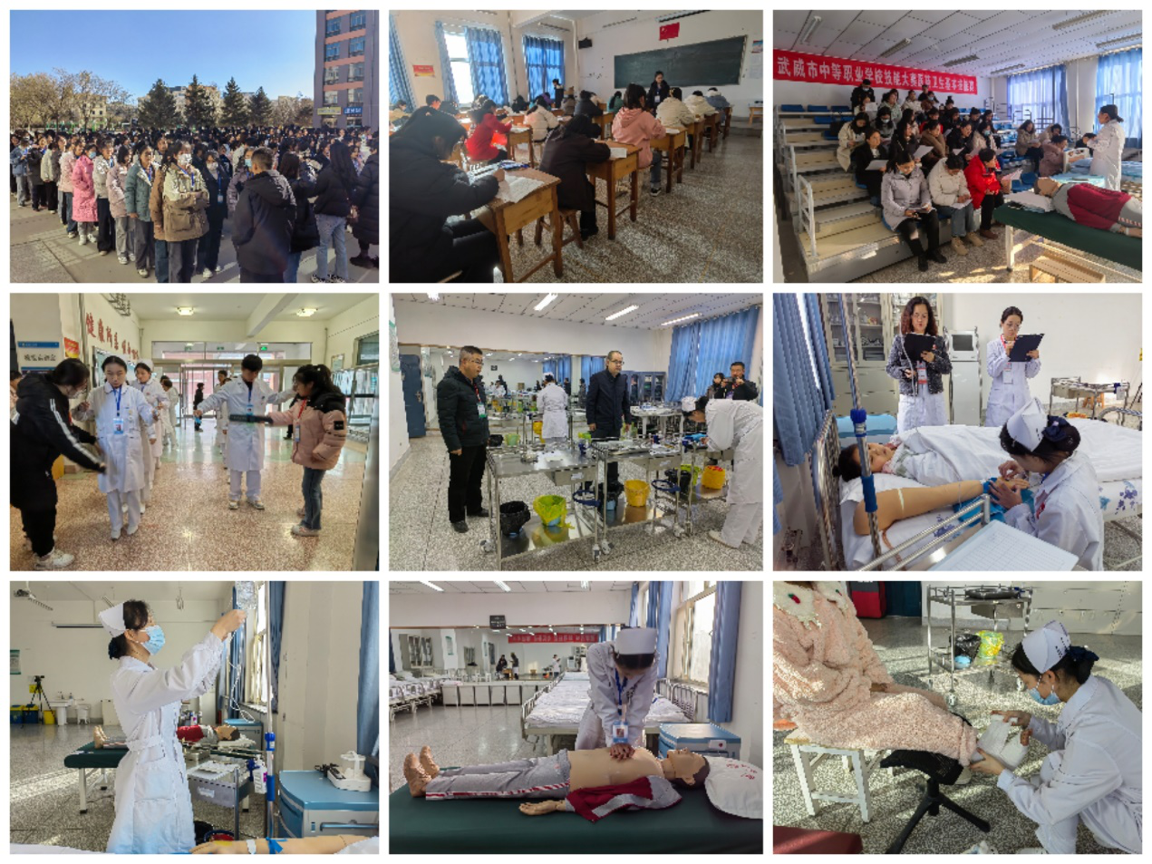 12月4日至8日,2024年武威市中等职业学校技能大赛护理技能赛项在学校卓行楼如期举行,来自全市4所中等职业院校的675名选手参加了比赛。比赛设置理论考试和技能考试两项内容,技能考试包括心肺复苏、静脉输液、右踝关节包扎三项护理技能操作。