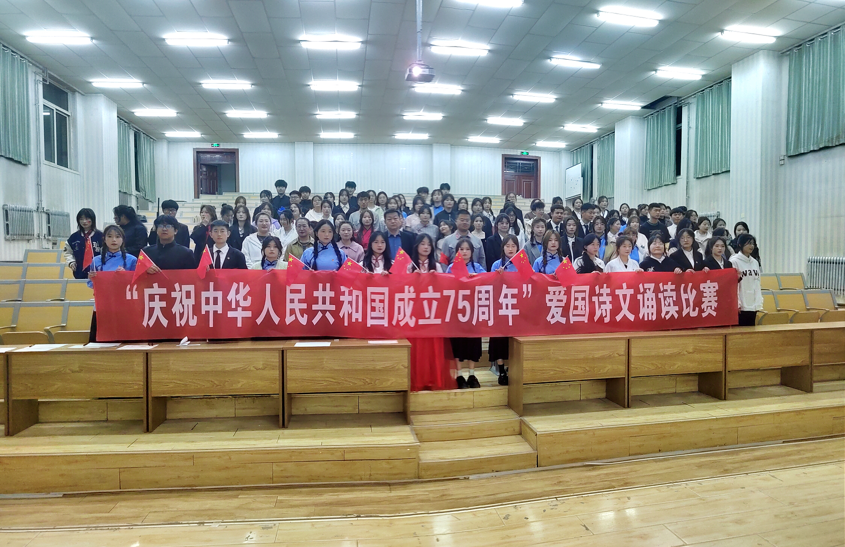 为庆祝中华人民共和国成立75周年,3月28日,药学院在正德厅举行了以“庆祝中华人民共和国成立75周年”为主题的爱国诗文诵读比赛。全院共13个参赛队参加,药学院学生工作负责人魏曙光、团委书记杨琨、辅导员鲁倩林、全体班主任及150余名学生代表共同观看了比赛。