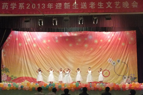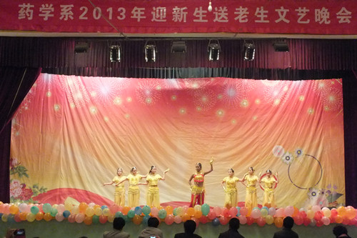 为喜迎2013级新生,增进师生情谊,欢送2011级毕业生顺利走向实习岗位,10月14日晚七点,药学系在学院大礼堂举办2013级“迎新生·送老生”文艺晚会。