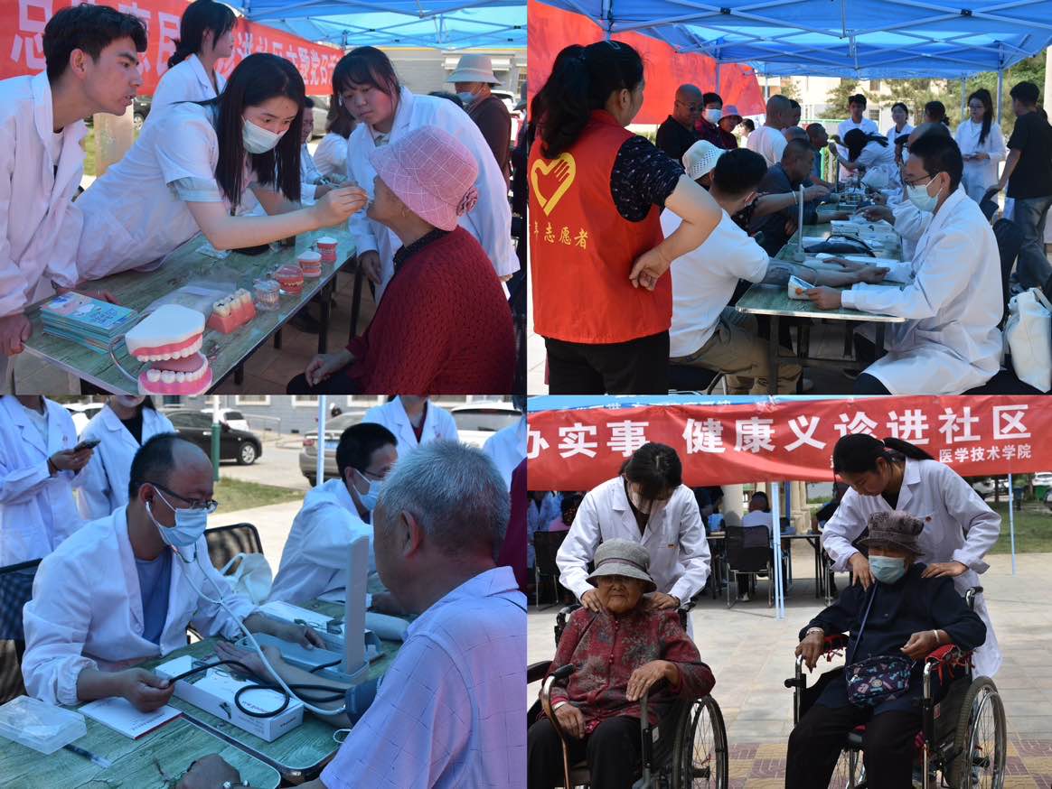 医学技术学院选派了中医学、针灸推拿学、口腔医学、医学检验等多位经验丰富的专业医师,走进基层,现场进行义诊、针灸推拿、测血糖、测血压和中医药健康知识宣讲等,一共为100多名社区群众义诊服务。活动现场各科医师耐心的解答了居民们关心的健康问题,并根据每一位居民的个人情况提供了具有针对性的健康建议和科学的生活指导。参与义诊的各专业学生志愿者们也在实践中得到了锻炼和提升。